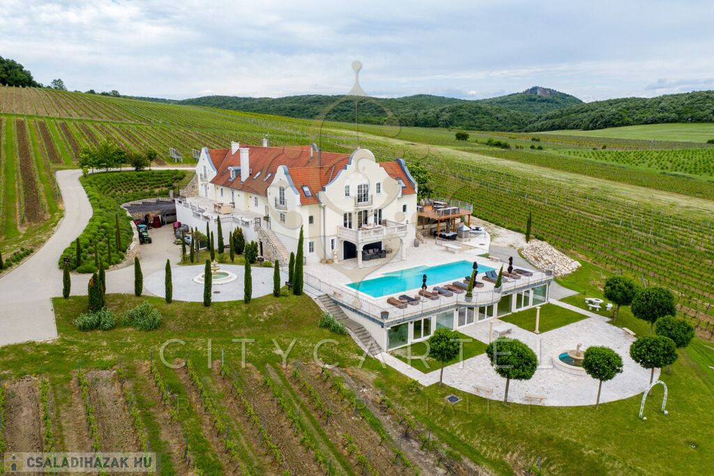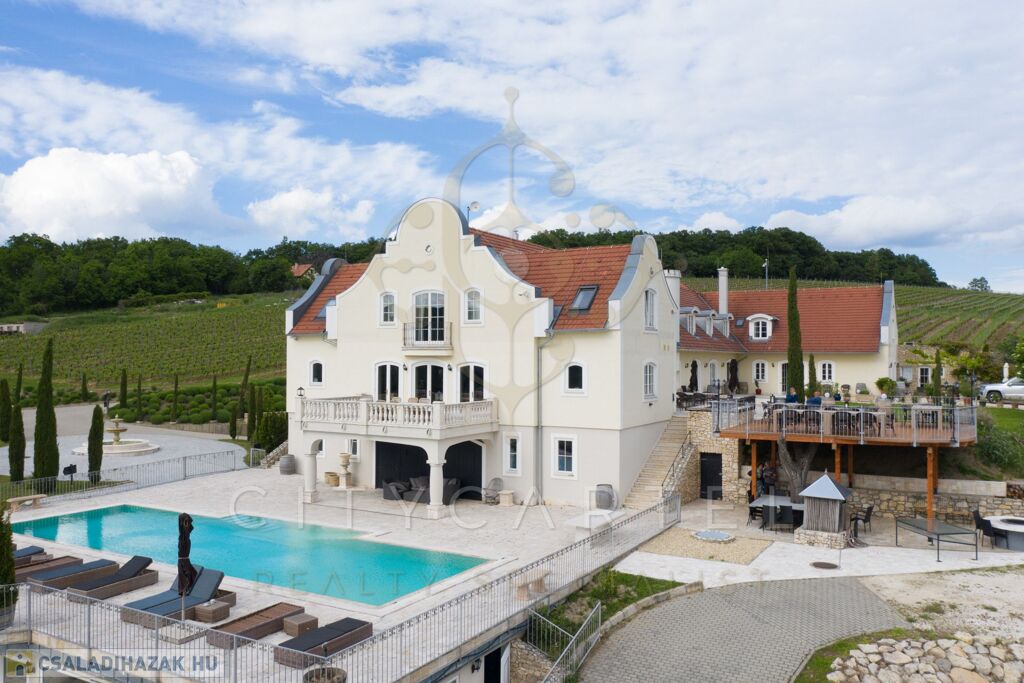 FESTŐI környezetben, a Balatonhoz közel kínálok eladásra egy francia Chateaux stílusban megépített, eklektikus, CSODÁLATOS panorámás, 2250 nm alapterületű, FELÚJÍTOTT, 3 szintes, 9 szobás BORBIRTOKOT a hozzá tartozó 10 hektárnyi szőlőtermő területtel!