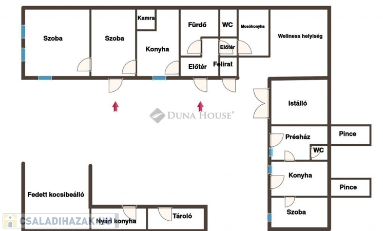 Felújított parasztház wellnessrészleggel Baranya megyében, kiadásra vagy állandó lakhatásra!Baranya megyében, az M60-as autópálya bólyi lehajtójától mindössze 4 km-re, a nyugodt fekvésű Monyoród településen kínálunk megvételre egy körülbelül 140 éves, 2020-ban teljes körűen felújított, klimatizált parasztházat. Az ingatlan jelenleg vendégházként üzemel, egy mindössze 180 fős, zsákutcás faluban.Az ingatlan jellemzőiA lakóépület nettó alapterülete kb. 90 m², melyben két szoba, konyhaétkező, kamra, egy kádas és zuhanyzós fürdőszoba, külön mellékhelyiség, valamint mosókonyha került kialakításra.Az ingatlan összközműves: víz-, gáz-, villany- és csatornahálózatra csatlakozik.A fűtést gázkazán, vízteres cserépkályha, valamint klímaberendezés biztosítja.Telek és melléképületekA telek területe megközelítőleg 1400 m², melynek első, mintegy 700 m²-es része parkosított.A korábbi istállóépületből egy kb. 50 m²-es, önálló lakóegység került kialakításra, mely szobát, konyhát, zuhanyzót, WC-t, valamint egy 25 m²-es közösségi teret foglal magába. Az épülethez két pince is kapcsolódik.A főépület és az istálló találkozásánál egy wellnessrészleg kapott helyet, jakuzzival, szaunával és merülő dézsával.További extrák8,2 kW-os napelemes rendszer, 3×32 A áramkapacitássalKét autó számára kialakított beállóNyári konyha és több szerszámtároló az udvarbanAz ingatlan teljes berendezéssel, a napelemes rendszerrel, valamint a wellness elemekkel együtt kerül értékesítésreA település folyamatosan fejlődik: megújult a kultúrház, az orvosi rendelő és a buszmegálló, valamint élelmiszerbolt is rendelkezésre áll.Pécs 25 km, Mohács 20 km, Harkány 35 km távolságra érhető el. Az ingatlan falusi turizmusra is ideális vállalkozási lehetőséget kínál, jelenleg is vendégházként üzemel, így a hasznosítása azonnal folytatható.