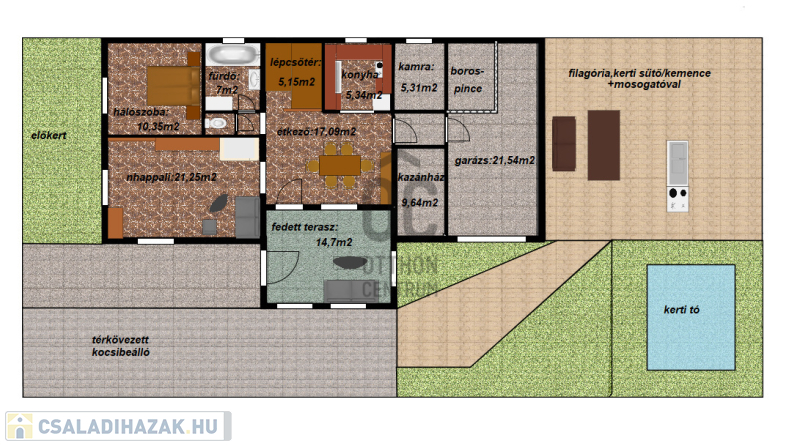• tágas, fedett terasz – családi és baráti összejövetelek tökéletes helyszíne