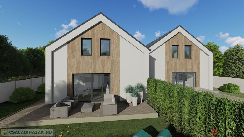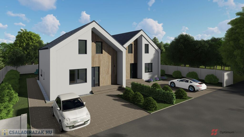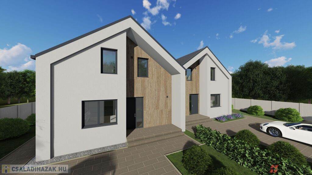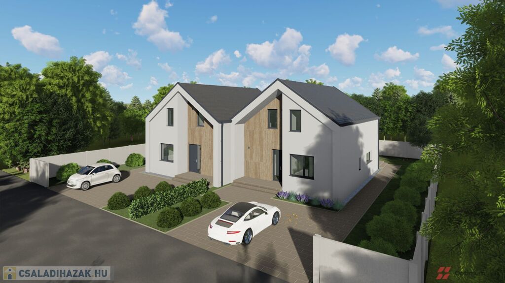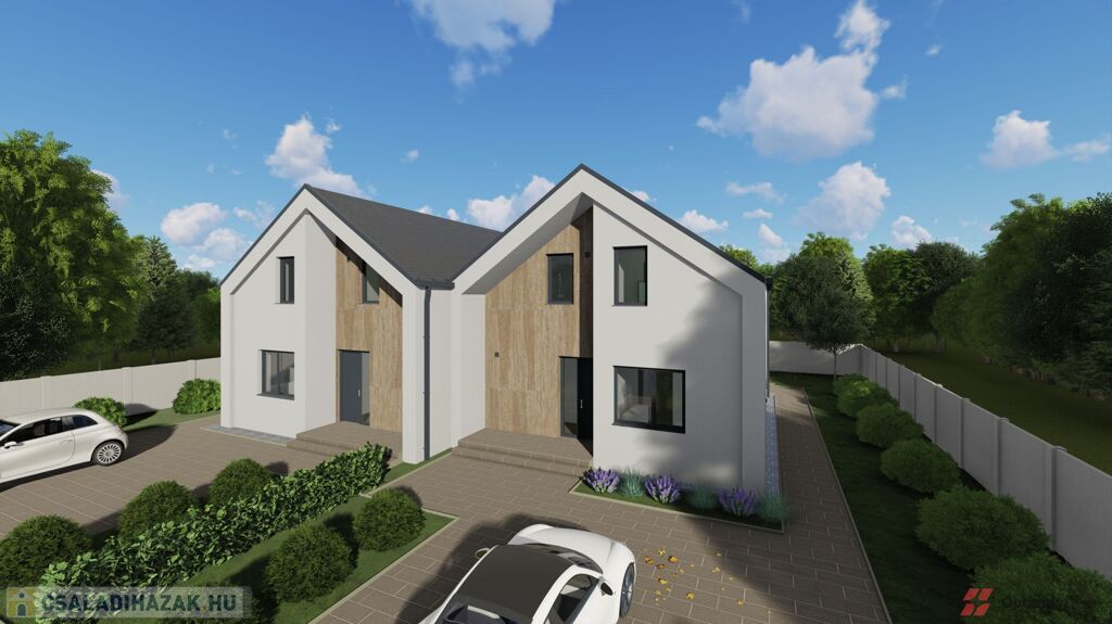 Mosonmagyaróváron a Duna Lakóparkban, ÚJ ÉPÍTÉSŰ, 364 m2-es telekrésszel rendelkező, 113 m2 hasznos alapterületű, 3 szoba + nappalis, kiváló alaprajzi elrendezésű, magas műszaki tartalommal épült, energiatakarékos hőszivattyús fűtési rendszerrel szerelt ikerház, részben fedett 20 m2-es terasszal, 36 m2 - es térkövezett gépkocsi beállóval emeltszintű szerkezetkész állapotban eladó.