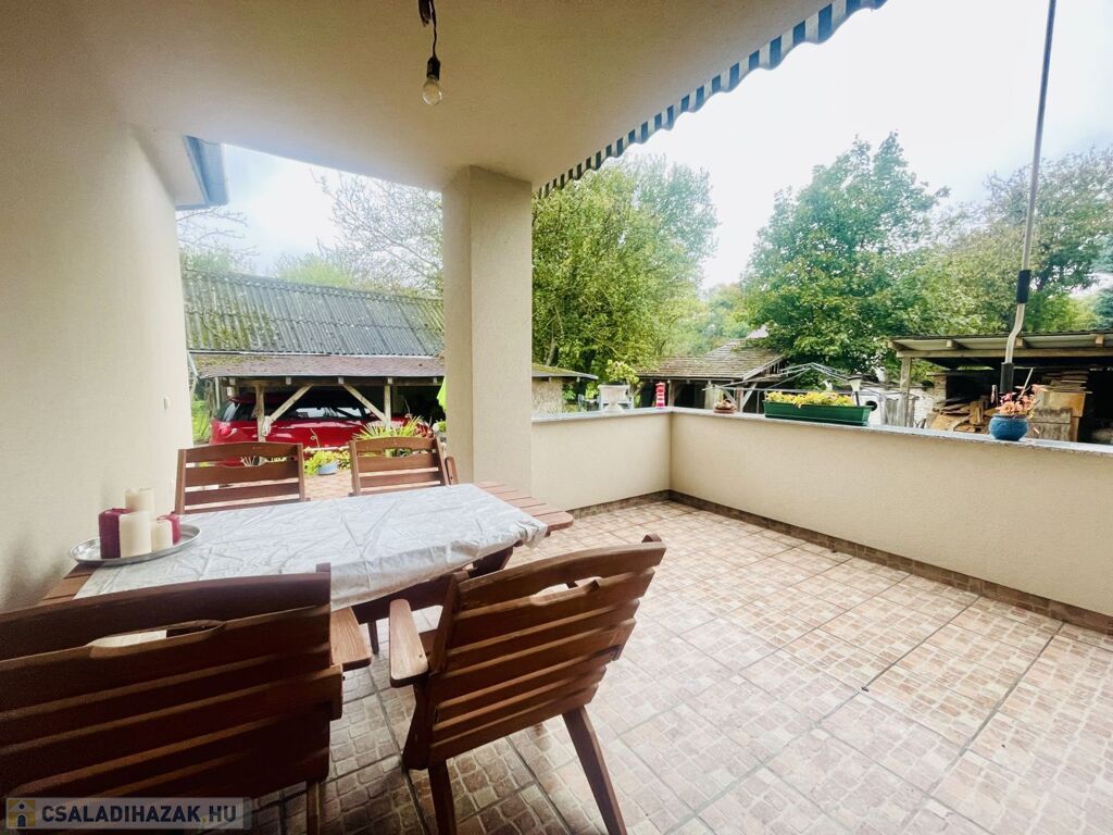 Az udvarban parkosított kert, fúrt kút, garázs, fedett pagoda – családi és baráti összejövetelek tökéletes helyszíne.