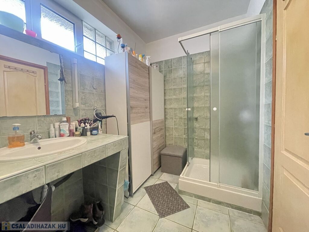 A földszinti fürdő zuhanyzóval és káddal is, az emeleti káddal felszerelt.