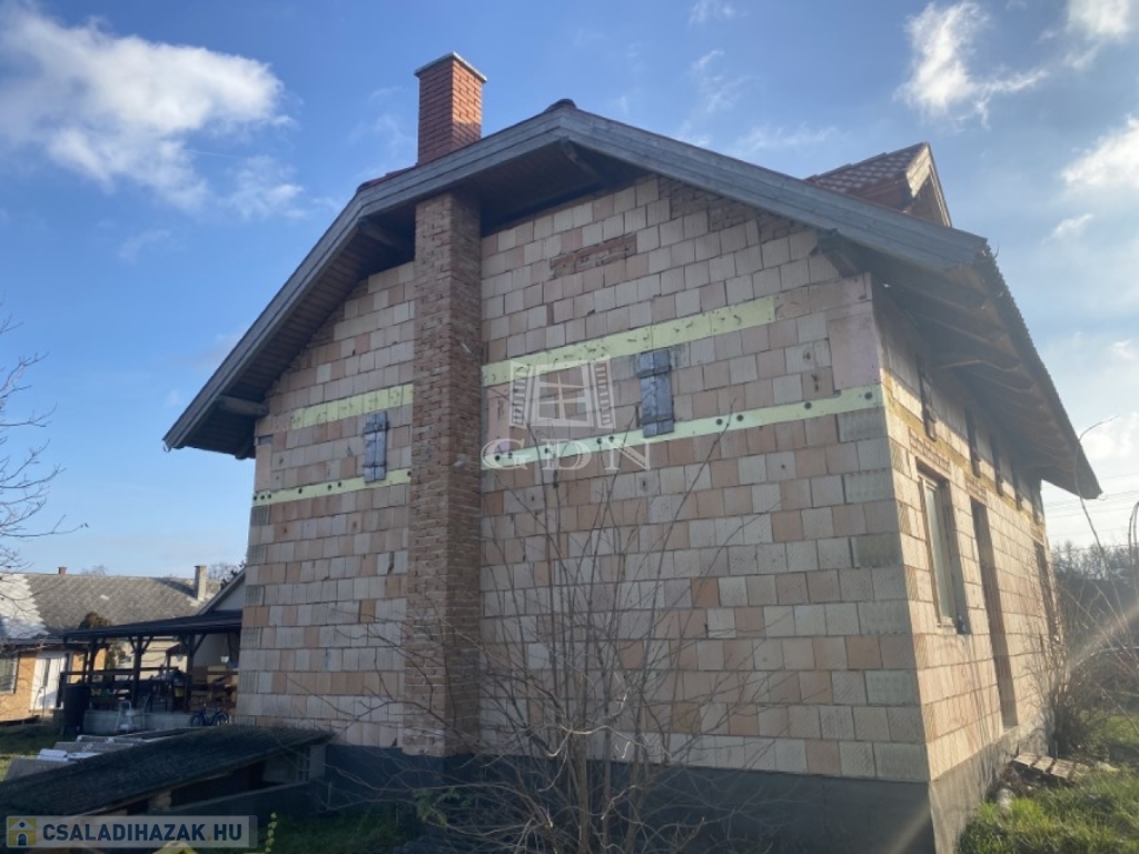A ház építése 2008-ban kezdődött kőbeton sávalapozással, c.16 minőségű beton lábazati falakkal, 2 rétegű talajnedvesség elleni szigetelő lemezzel, Porotherm 38 cm vastag külső határoló falakkal és Porotherm 30 cm vastag H10 habarccsal szigetelt belső főfalakkal, vasbeton födémmel, nyeregtetővel, kerámia cserépfedéssel, 2 leier turbo kéménytesttel, melybe akár gázkazán, vegyestüzelésű kazán, kandalló köthető. Fa nyílászárók kerültek beépítésre. Közművek közül a csatorna és a villany került bekötésre az ingatlanba.