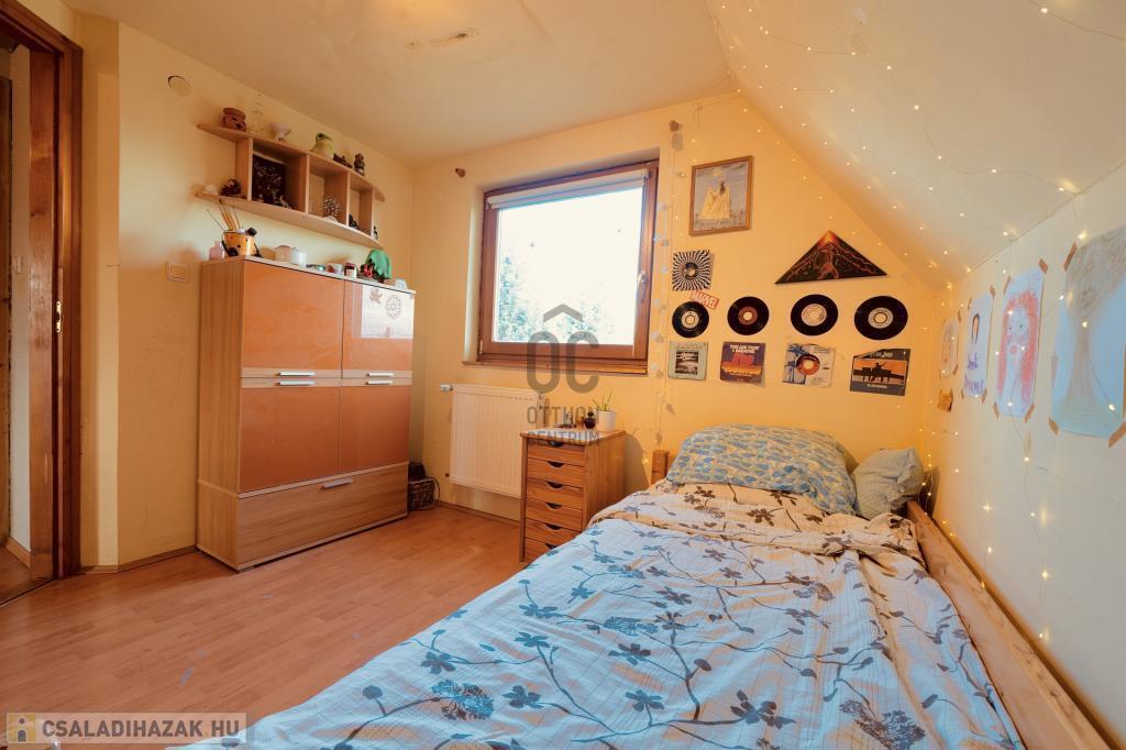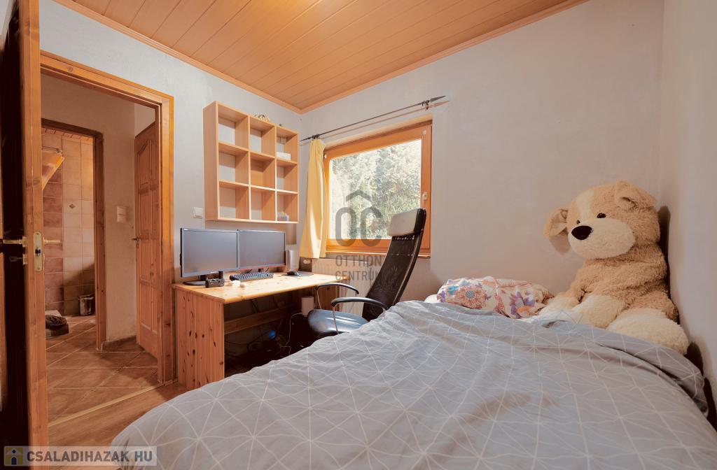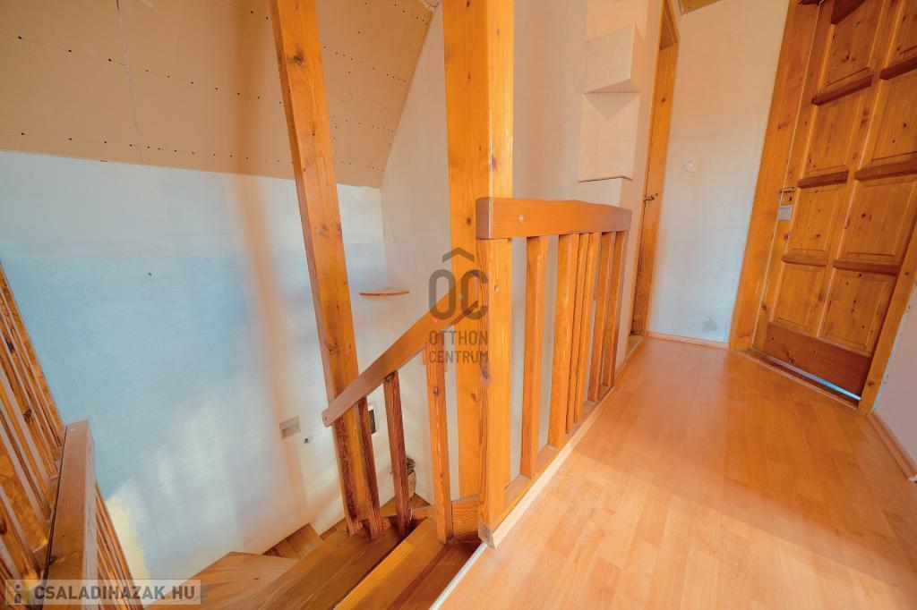 - helyiségek a földszinten: barátságos előtér fogadja a betérőt, tágas nappali és konyha egy légtérben, hálószoba, fürdő-zuhanyzóval, külön WC