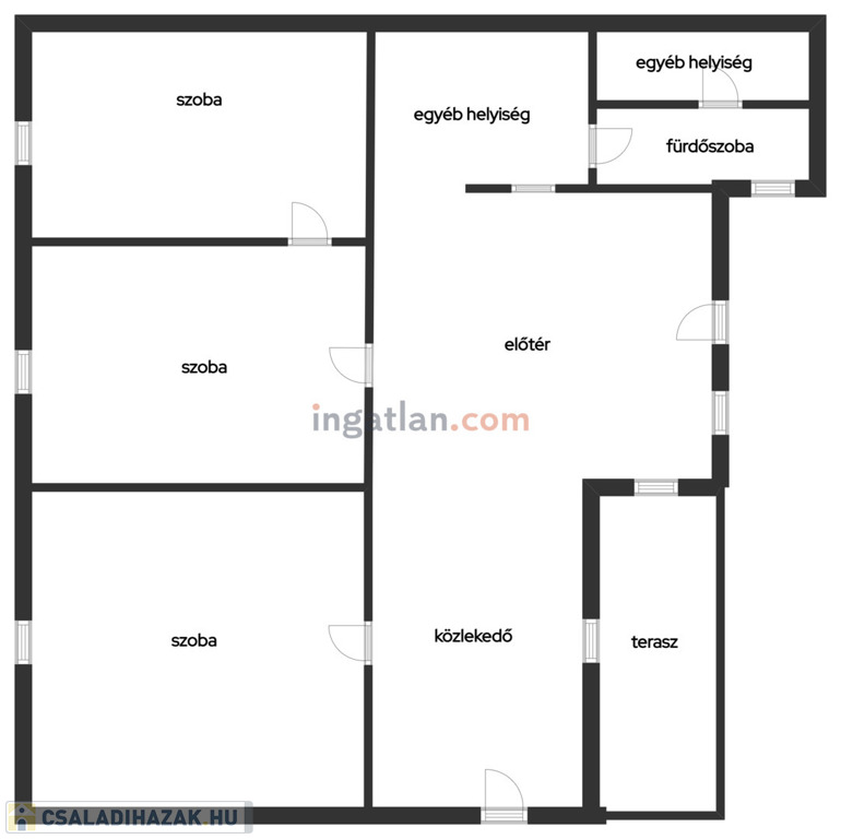 A ház elosztása praktikus: az egyik szoba külön bejáratú, a másik kettő egymásból nyílik