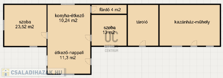 tároló (vendégszobává alakítható), villany és fűtés adott