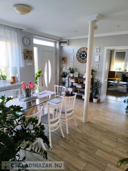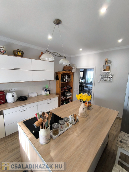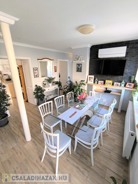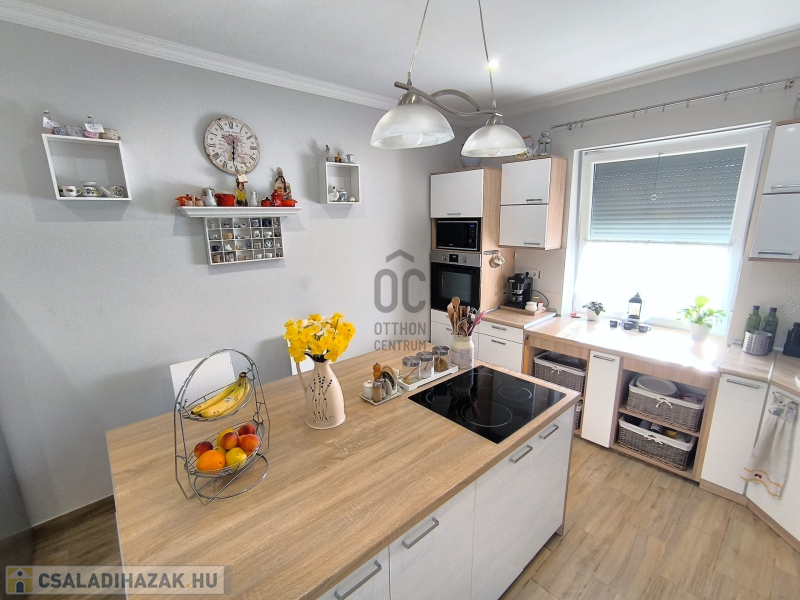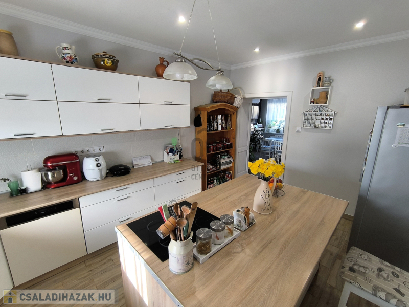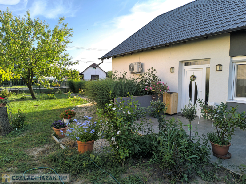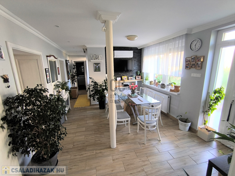 Az épület 122 négyzetméter, amely egy 1621 négyzetméteres telken található. A házban nappali és 2 hálószoba, 1 fürdőszoba található, illetve a konyha előterében egy tágas étkező, mely akár nappaliként is szolgálhat, és amelynek köszönhetően a család minden tagja kényelmesen elférhet. Az ingatlanhoz tartozik egy 20 négyzetméteres terasz, amely a kertre és a sziklakertre néz. Az ingatlan fűtéséről egy vegyes kazán és egy vadonat új gázkazán gondoskodik radiátorokon kersztül, míg a hűtése klímával megoldott, mellyel akár télen is rá lehet segíteni a fűtésre.