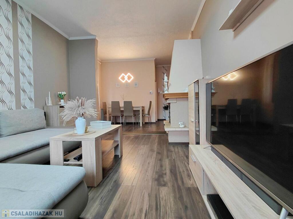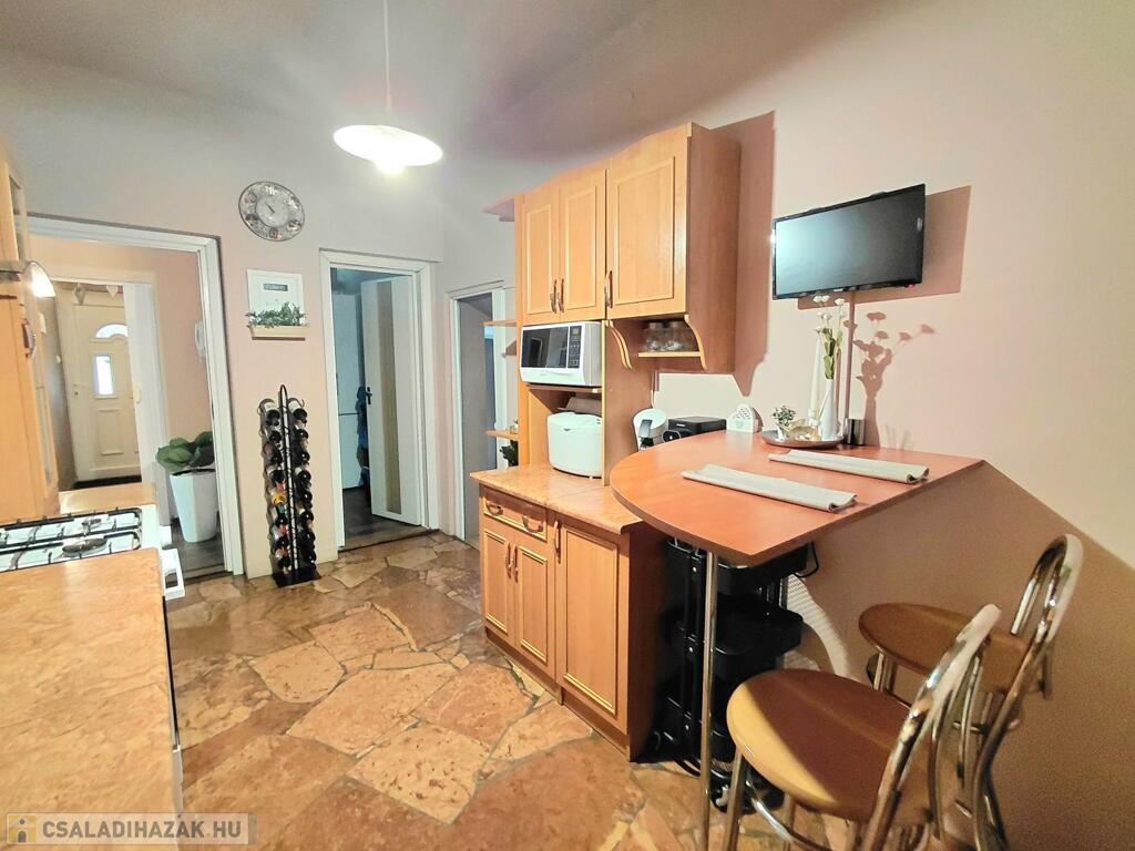 Eladó egy 134 m² hasznos alapterületű, két külön bejáratú, de bentről is átjárható családi ház, amely egy 1079 m²-es gondozott telken helyezkedik el.