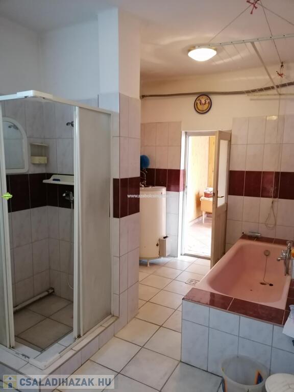 A fürdőszobában kád és zuhanyzó is van, hatalmas nagy, itt akár wellness rész is kialakítható.
