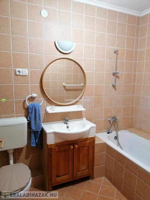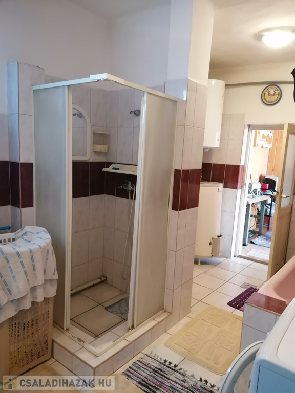 A fürdőszobában kád és zuhanyzó is van, hatalmas nagy, itt akár wellness rész is kialakítható.