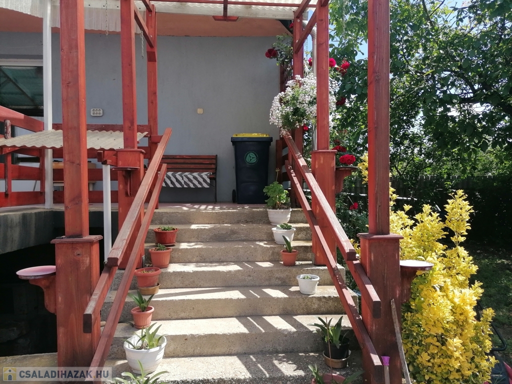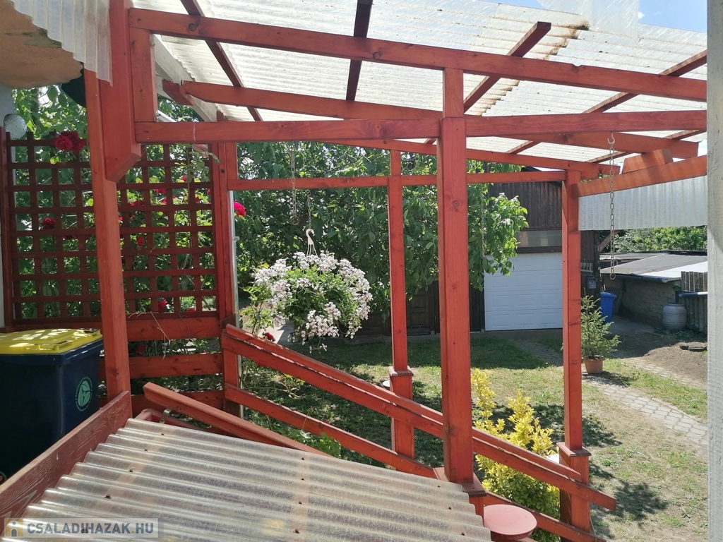 A tető lemez fedésű, a nyílászárók műanyagból vannak.