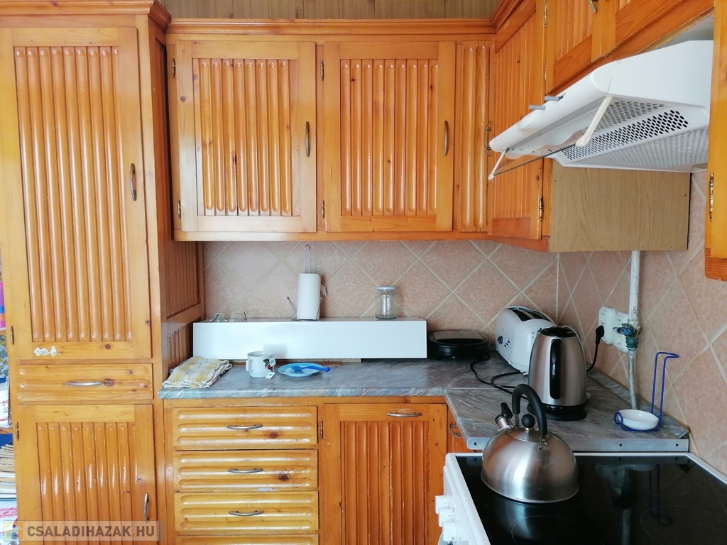 A konyha tágas, világos, az ablaka az udvarra néz, itt egy klíma is van felszerelve.