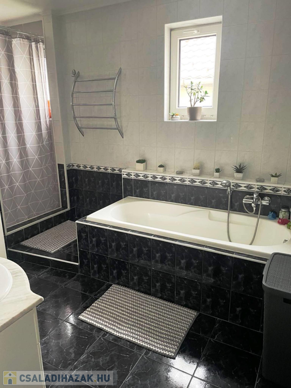 félemeleten hálószoba, közlekedő, fürdőszoba ( külön helyiségben WC) gardróbszoba