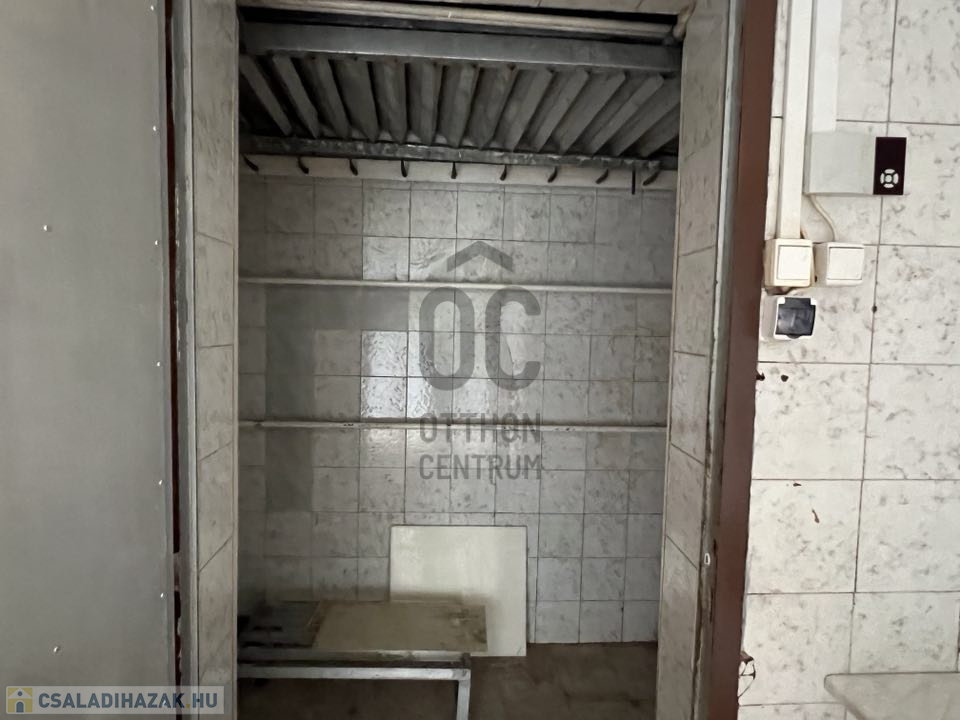 - Az épület 30 m2-es földszintjén található üzlet, raktár (ami korábban hűtőkamraként funkcionált) és a kívülről megközelíthető vizesblokk.