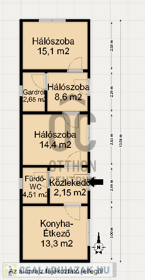 - 3 hálószoba, közlekedő, fürdőszoba-WC, konyha, kamra került kialakításra