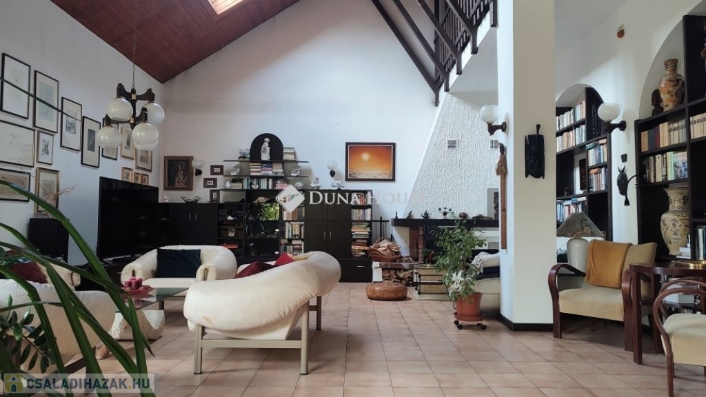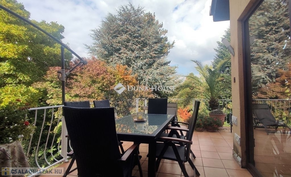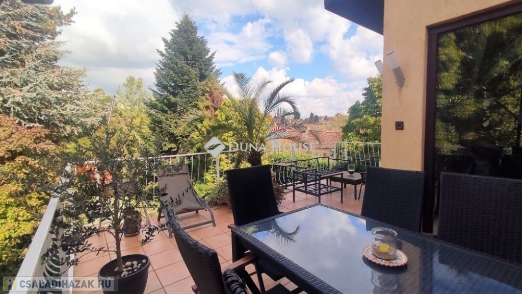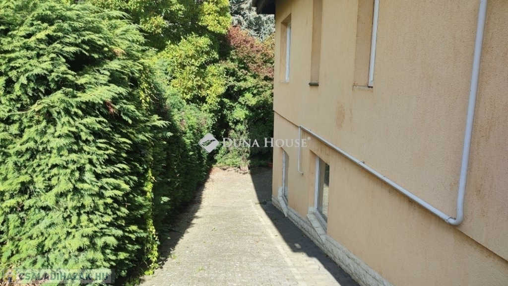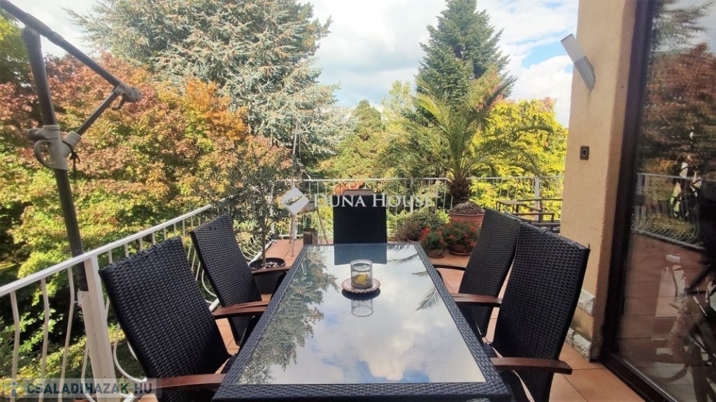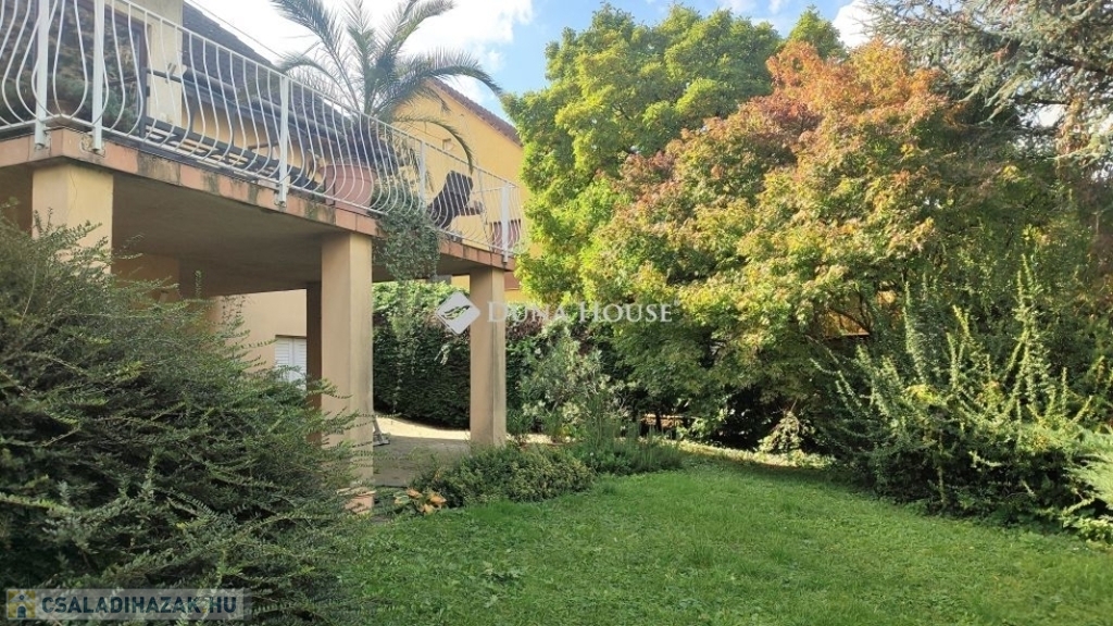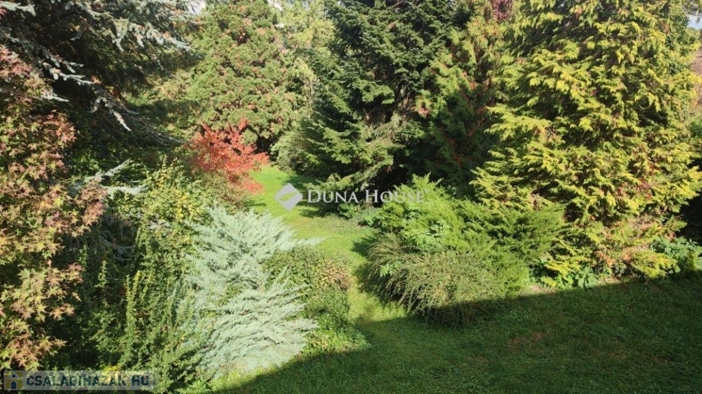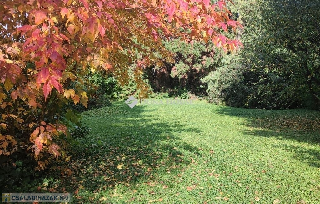 A ház egy 1324 m²-es, gondozott, ősfás telken fekszik, ahol a buja növényzet és egy impozáns mamutfenyő biztosítja a páratlan hangulatot.