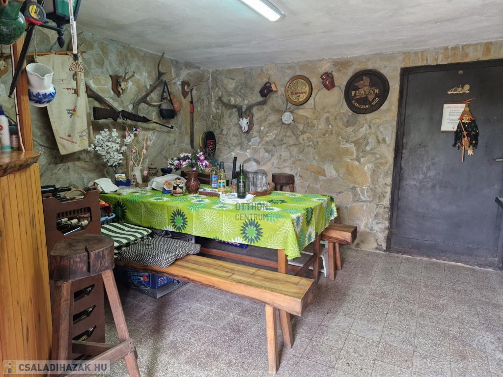 - A szuterén részen van egy 17,5m2-es szoba, mely jelenleg borozó részként funkcionál, valamint a mosógép is idelent kapott helyet. A másik helyiség a borospince, ahol a saválló hordók találhatóak.