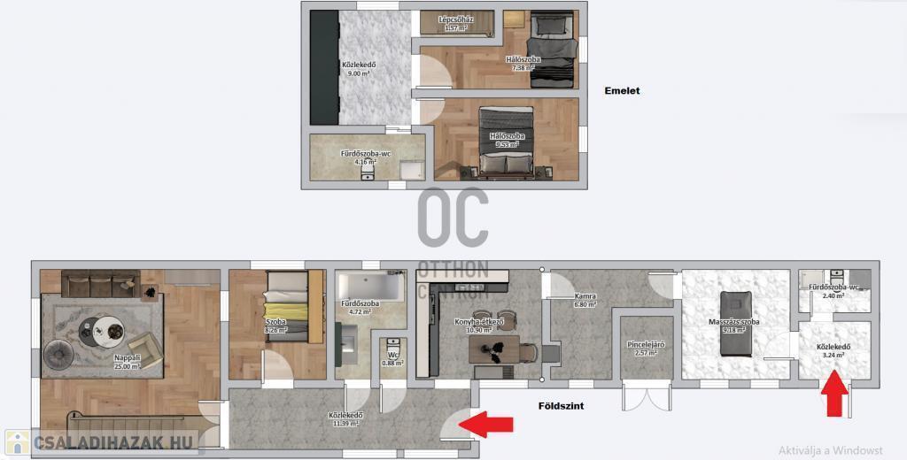 - Az épület hátsó részében kialakításra került egy masszázs szalon, különálló fürdőszobával.
