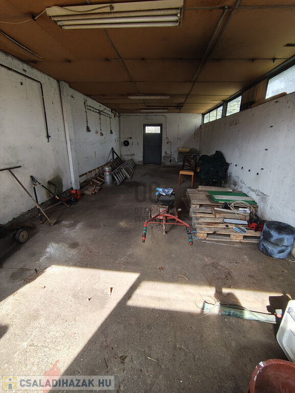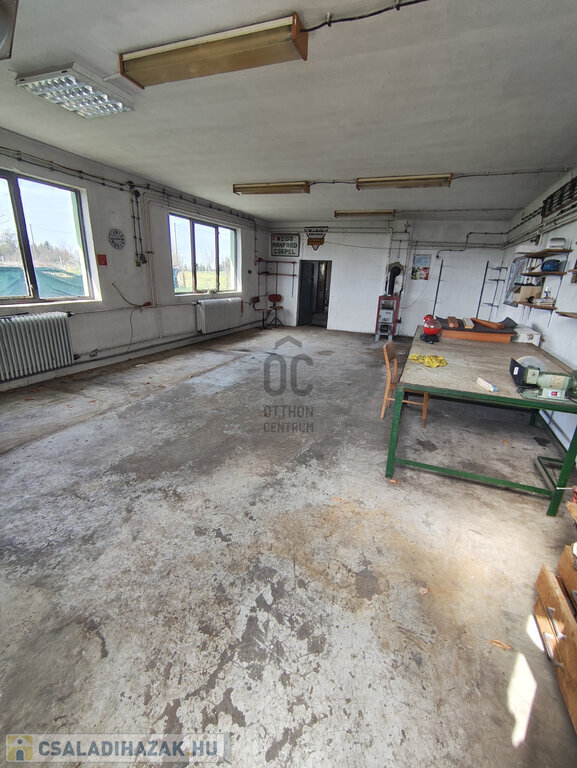 A telek hátsó részében található, közel 100 m²-es műhely–tároló épület , amely 380 V-os ipari árammal, WC-vel és zuhanyzóval felszerelt, így ideális autószerelő, lakatos, asztalos műhelynek, vagy bármilyen vállalkozási és ipari tevékenységhez.