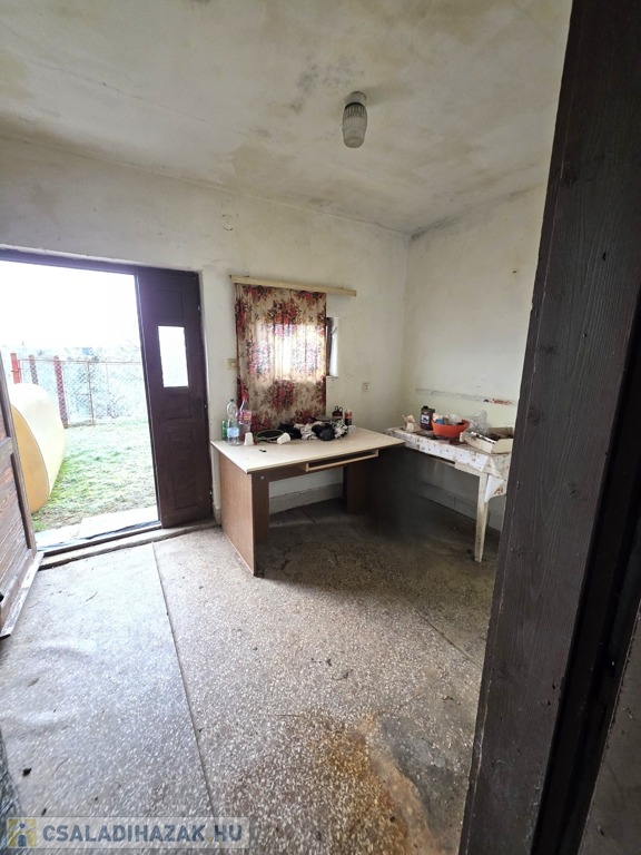 Zala vármegye, Nagykanizsa, 42m2-es zártkerti ingatlan eladó. A Szentgyörgyvári hegyen (4.hegyhát) található, téglaépítésű, kétszintes ingatlan fogadószintjén két szoba, melyből az egyik erkélyes, a külön bejáratú pinceszinten pedig további három helyiség (konyha és fürdőszobává alakítható szoba, valamint tároló) kerültek kialakításra. A közel 800m2-es telken elhelyezkedő, gazdasági épület besorolású ingatlan melegéről kályha és/vagy elektromos fűtés gondoskodhat. A közművek közül az áram-, és a vízszolgáltatás rendelkezésre áll. Némi átalakítás, felújítás után az ingatlan lakhatóvá is tehető.