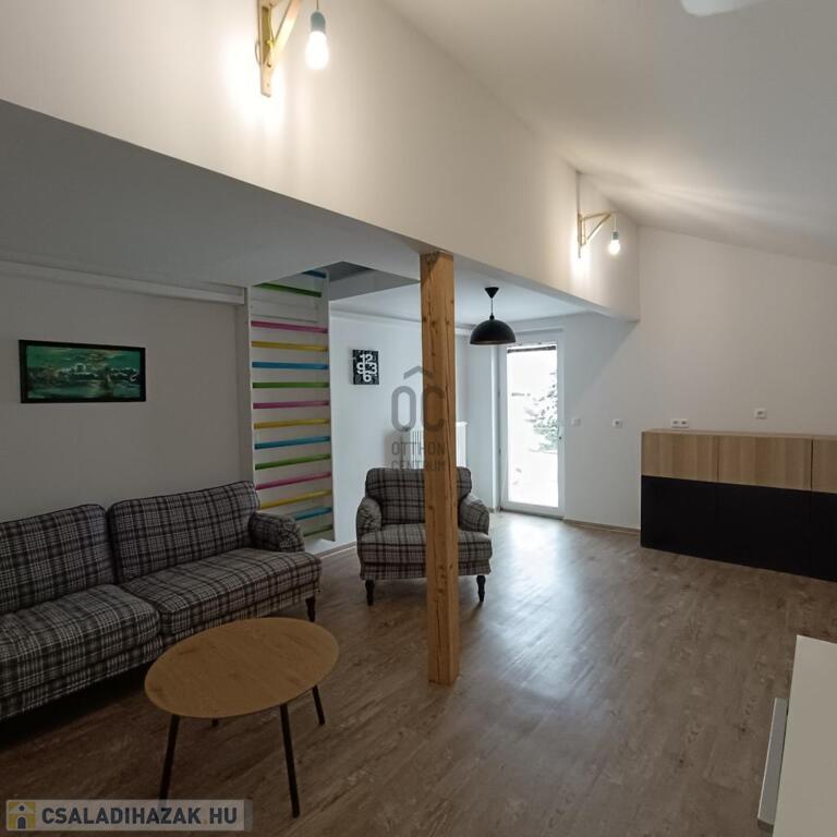 - emelet helyiségei: 1 hálószoba, hatalmas nappali, gardrób, közlekedő, fürdő-WC, gyerekeknek játszó galériás szoba- össz 47 m2