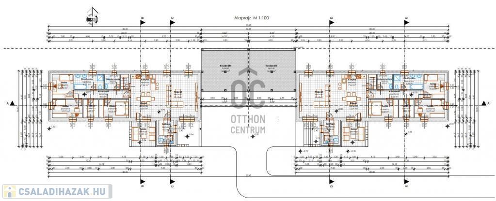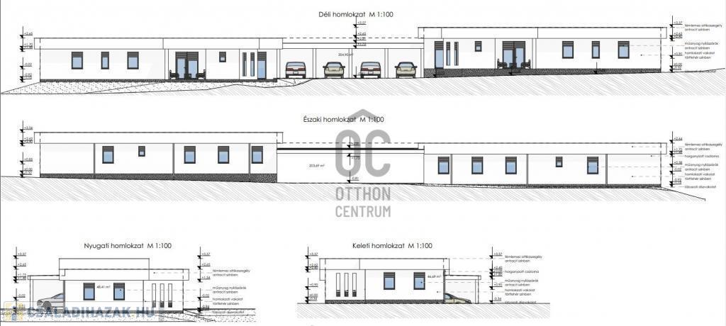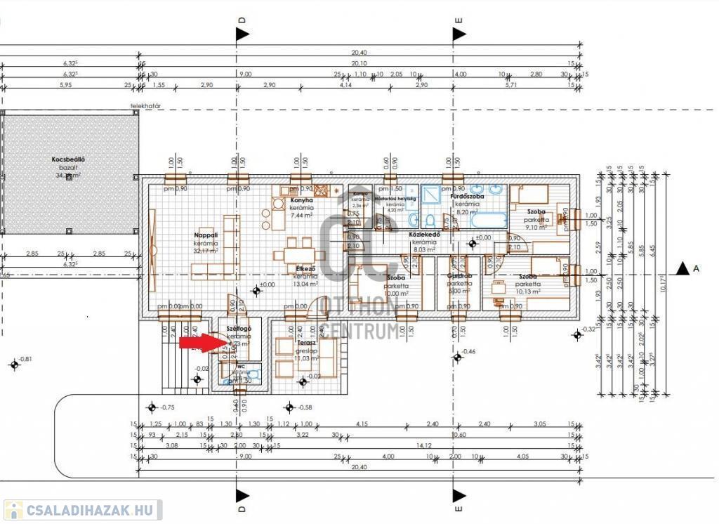 - Felosztása: szélfogó, WC, amerikai konyhás nappali, közlekedő, kamra, háztartási helyiség, fürdőszoba, gardrób, 3 szoba és terasz.