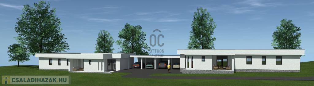 Az ingatlan ikerház stílusban épül, de csak az autóbeállók érnek össze.