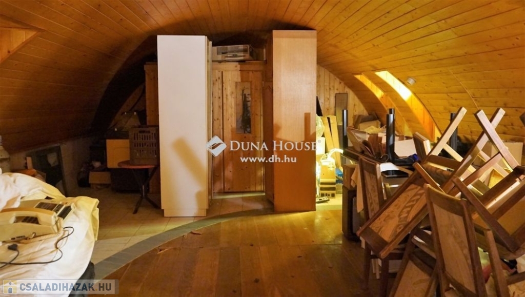 Az utcafrontról nem érzékelhető, de az ingatlan kétszintes, mivel domboldalba épült a terület enyhén lejtős.