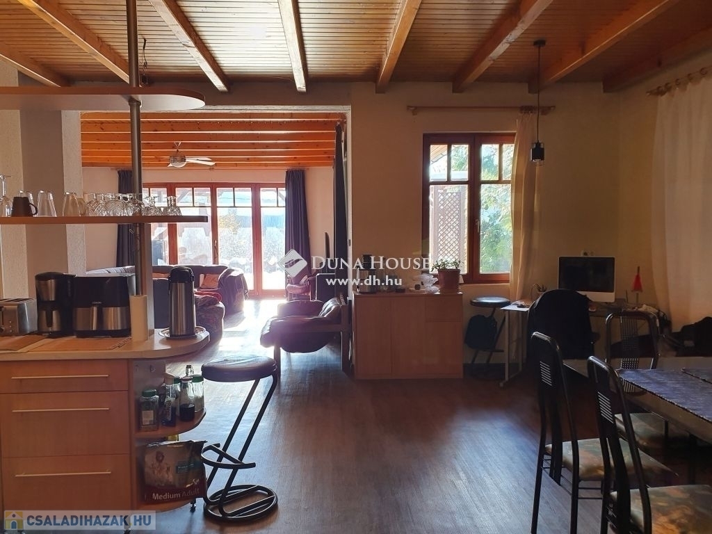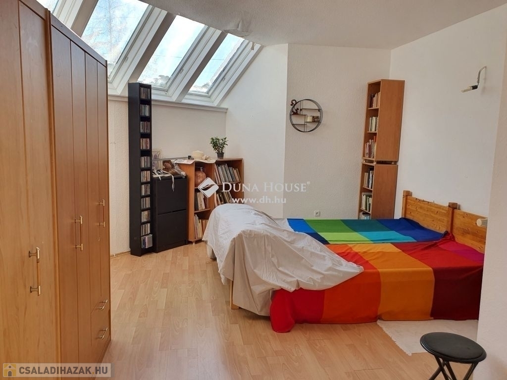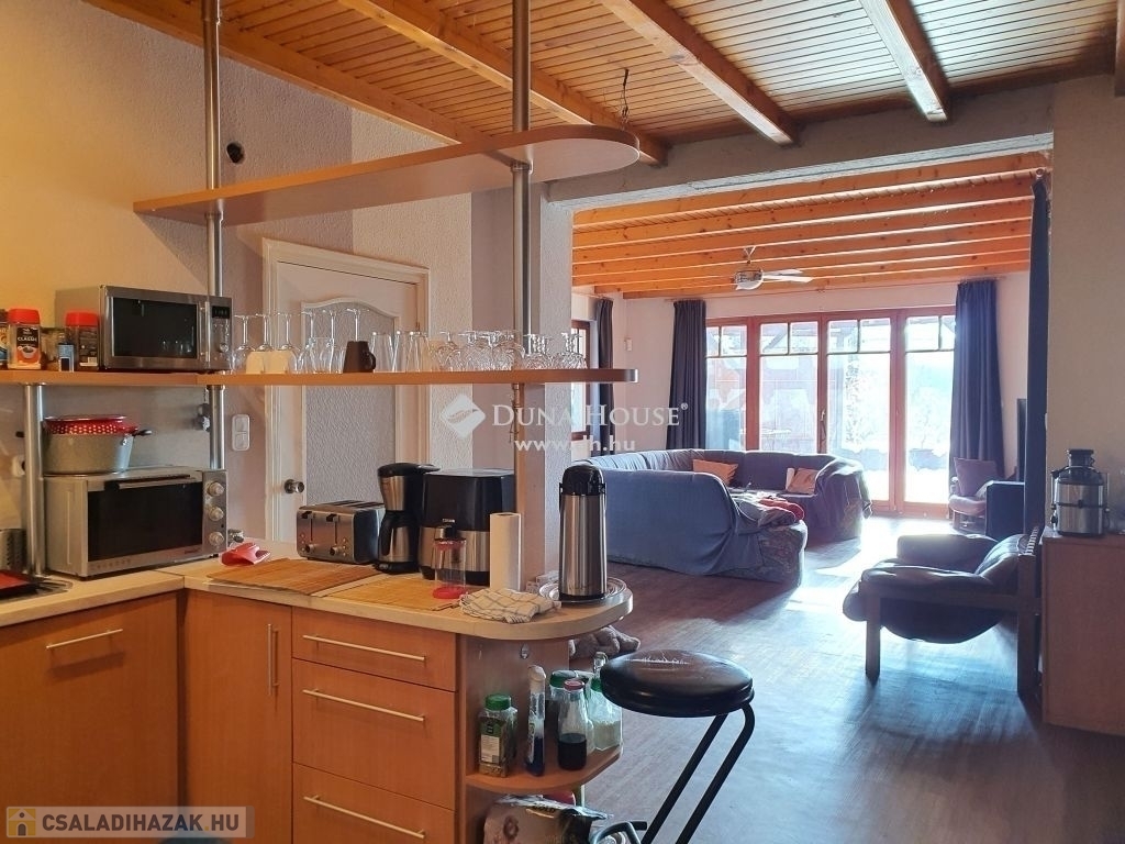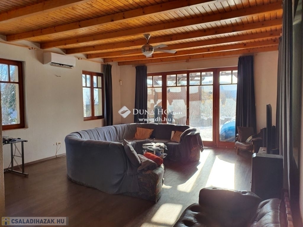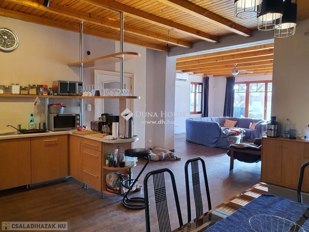 Az ingatlan egyedi kialakításának köszönhetően maximális kényelmet nyújt lakóinak. A nappali szinten, a panorámás nagy teraszos,tágas amerikai konyhás nappali, dolgozó, zuhanyzós fürdő+ WC helyezkedik el. Az előszobából jutunk le az alsó szintre ahol 3 háló fürdő+ WC, külön WC, kazánház, kamra található. A két hálóból kijárat van a nagyon hangulatos belső kertbe. A nagy ablakoknak és a déli tájolásának köszönhetően minden szoba napfényes. A ház 1997-ben épült, de végleges jelenlegi formáját 2003-ban nyerte el. A nappali szinten padlófűtés működik, de norvég elektromos panel fűtésrendszer is működik. Ezen kívül klíma is található a nappaliban, ami hűtő-fűtő rendszerének köszönhetően tökéletes komfortérzetet biztosít. A kert szép gondozott, egy autó számára kocsibeállási lehetőség van, de akár több autó számára is megoldható a kerti beállás.