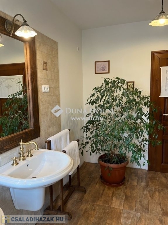 Eladó egy különleges ingatlan, amely Nagykovácsi - Nagyszénás területén található, örök panorámás, erdőszéli helyen. Egy Ybl-díjas építész által tervezett, téglaépítésű családi ház, amely a Balaton-felvidéki hangulatot idézi. A ház napfényes, nagy teraszokkal és télikerttel rendelkezik, továbbá egy fa tüzelésű kemencével is, amely még meghittebbé teszi a vidéki hangulatot.Az ingatlan különlegessége abban rejlik, hogy a vidéki stílus és a modern kényelem harmonikus ötvözete. A fa tüzelésű kemence nem csak melegét, hanem otthonosságát is hozzáadja a belső térhez.Ház beosztása: Földszint – előszoba, konyha, kamra, fürdőszoba, vendég-/ dolgozó szoba, étkező, lépcső alatt kazánház / tároló, nappali, télikert. Emelet - 3 db hálószoba, gardróbszoba, fürdőszoba, galéria. Nagyméretű padlás. Műszaki felszereltség: mosogatógép, tűzhely, elszívó, hűtő, mosógép, cirkó gázkazán, padlófűtés (konyha, fürdőszobák), szobákban lapradiátorok, nappaliban fa tüzelésű kemence is.Az amerikai és francia iskola közelsége kiváló lehetőséget nyújt a családok számára, akik nagy hangsúlyt fektetnek a minőségi oktatásra. Az infrastruktúra kiváló, így az itt élők minden szükséges szolgáltatást könnyen elérhetnek, miközben élvezhetik a nyugodt, családbarát légkört.Az ingatlan tökéletes választás azok számára, akik egy nyugodt, családias légkörű otthont keresnek, távol a város zajától, mégis könnyen elérhető távolságban Budapesttől. Élvezze a természet közelségét és a festői környezetet, amely minden évszakban különleges látványt nyújt. Ha Ön az igényes otthon és a vidéki élet harmonikus kombinációját keresi, ne hagyja ki ezt a ritkán adódó lehetőséget.