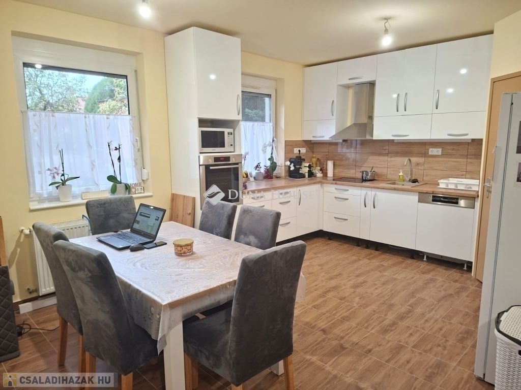 Új Roto R7 műanyag ablakok a tetőtérben, Rehau kétrétegű műanyag ablakok a földszinten redőnnyel és szúnyoghálóval mindkét szinten. A földszint 2,5 éve teljesen fel lett újítva, kivéve a fürdőszobát.
