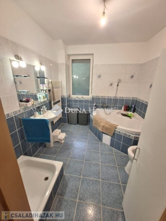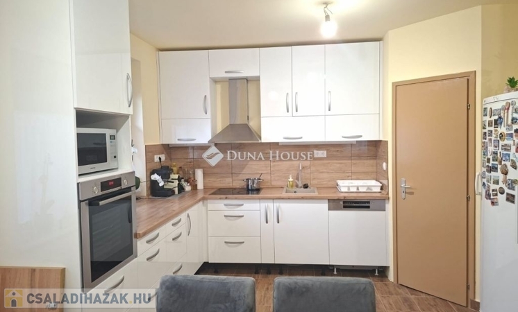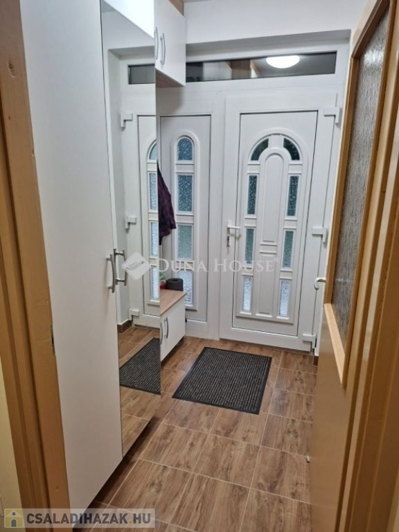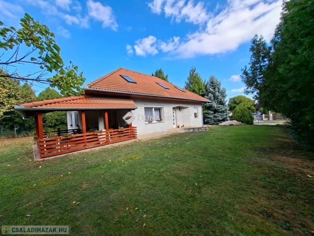 Eladó 2003-ban Porotherm 38 N+F téglából épült kétszintes családiház 25 nm-es fűtött garázzsal. A ház összesen 160 nm nettó. A földszint 85 nm és a tetőtér kb. 100/75 nm.Tetőtér beépítése 1,5 éve kezdődött folyamatban van. Készültségi szint kb 60 %-os. Fűtés, víz, villany előkészitve teljesen.Új Roto R7 műanyag ablakok a tetőtérben, Rehau kétrétegű műanyag ablakok a földszinten redőnnyel és szúnyoghálóval mindkét szinten. A földszint 2,5 éve teljesen fel lett újítva, kivéve a fürdőszobát.Külön két fürdő/WC és egy külön WC a földszinten. Grohe csaptelepekkel.Panasonic 5.3 Kw-os klíma a földszinten.Amerikai konyhás nappali minőségi Bosch beépített gépekkel.Földszinten egy 15 nm-es szoba, a tetőtérben három nagyobb.Mosókonyha/háztartási helyiség és kamraWiessmann 24 Kw-os Gázkazán Radiátoros fűtéssel, a két szint külön termosztáttal ellátott, egyedileg állítható.A melegvizet bojler éjszakai árammal vagy a gázkazán is biztosítja.25 nm-es fedett terasz, közvetlen kapcsolat a kerttelUtp hálózati csatlakozás kiépítve az egész házban.3 X 25 A ipari áram.3 + 8 m3- ciszternába bevezetve az esővíz csatorna.Parkosított, gondozott udvar örökzöldekkel.