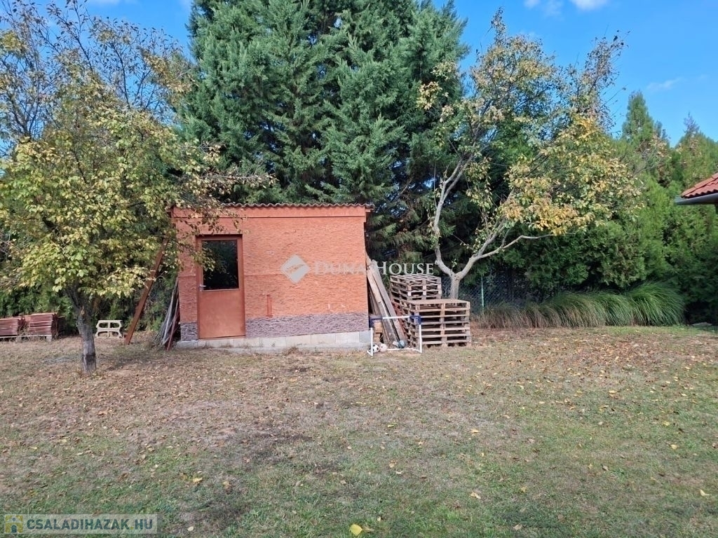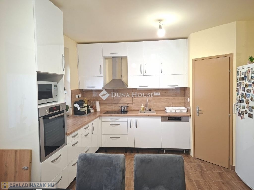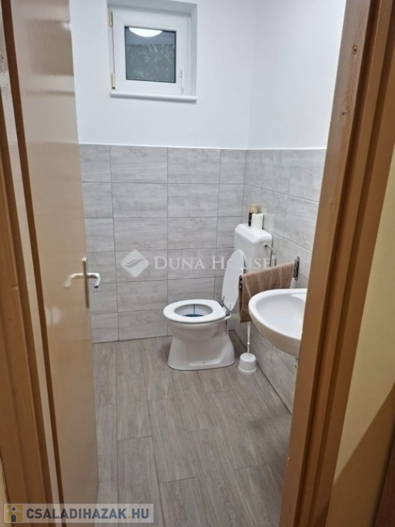 Eladó 2003-ban Porotherm 38 N+F téglából épült kétszintes családiház 25 nm-es fűtött garázzsal. A ház összesen 160 nm nettó. A földszint 85 nm és a tetőtér kb. 100/75 nm.Tetőtér beépítése 1,5 éve kezdődött folyamatban van. Készültségi szint kb 60 %-os. Fűtés, víz, villany előkészitve teljesen.Új Roto R7 műanyag ablakok a tetőtérben, Rehau kétrétegű műanyag ablakok a földszinten redőnnyel és szúnyoghálóval mindkét szinten. A földszint 2,5 éve teljesen fel lett újítva, kivéve a fürdőszobát.Külön két fürdő/WC és egy külön WC a földszinten. Grohe csaptelepekkel.Panasonic 5.3 Kw-os klíma a földszinten.Amerikai konyhás nappali minőségi Bosch beépített gépekkel.Földszinten egy 15 nm-es szoba, a tetőtérben három nagyobb.Mosókonyha/háztartási helyiség és kamraWiessmann 24 Kw-os Gázkazán Radiátoros fűtéssel, a két szint külön termosztáttal ellátott, egyedileg állítható.A melegvizet bojler éjszakai árammal vagy a gázkazán is biztosítja.25 nm-es fedett terasz, közvetlen kapcsolat a kerttelUtp hálózati csatlakozás kiépítve az egész házban.3 X 25 A ipari áram.3 + 8 m3- ciszternába bevezetve az esővíz csatorna.Parkosított, gondozott udvar örökzöldekkel.
