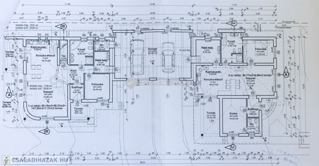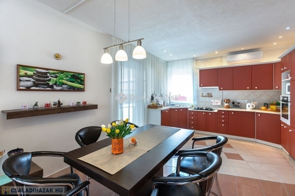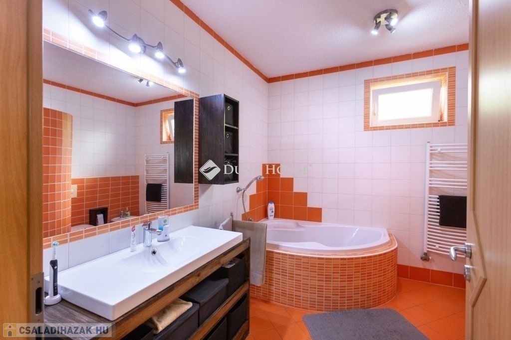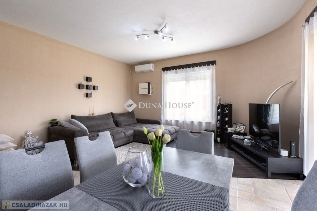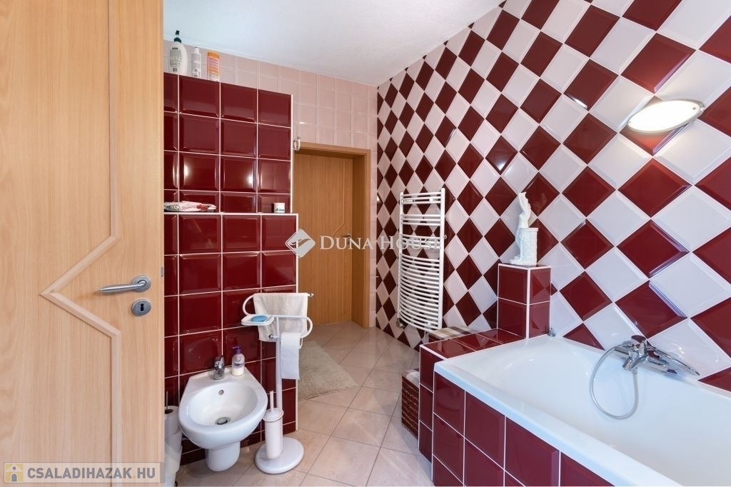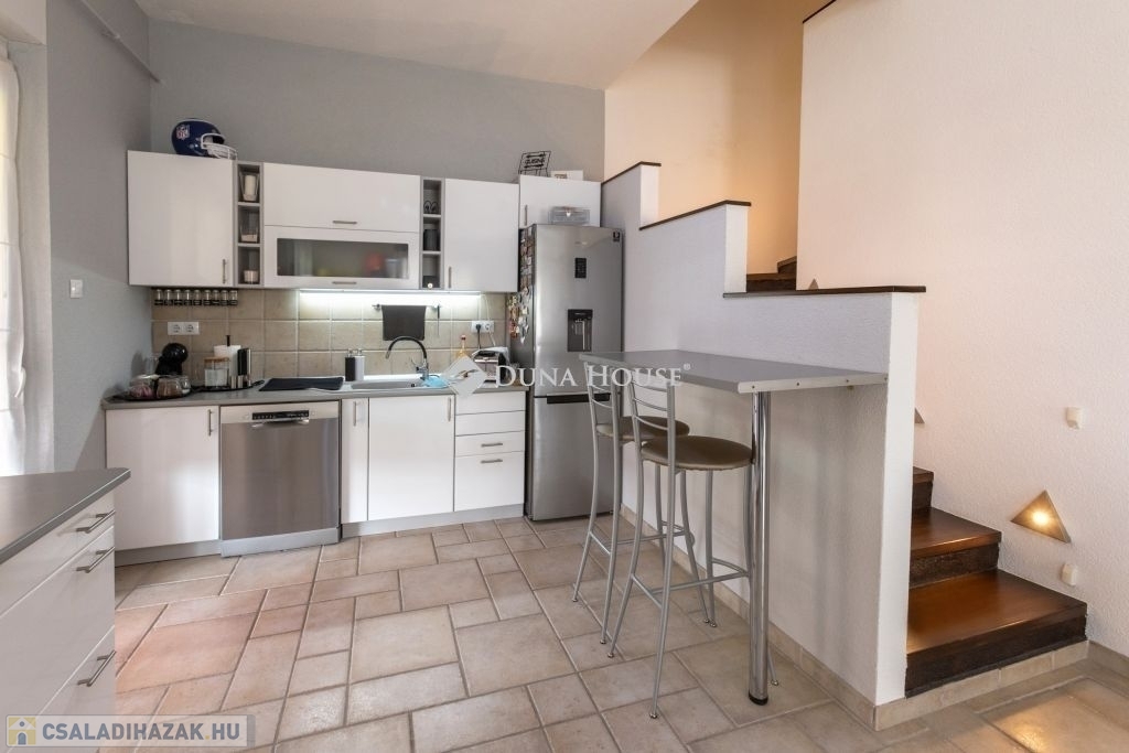 Tetőtér 58m²- 3 hálószoba- 2 gardrób- Nagyméretű fürdőszoba (épített tusoló, kád, wc, bidé)2. LAKÁS 95m²- Nappali- Amerikai konyha, étkezővel, fedett teraszos kiülési lehetőséggel- 2 hálószoba- Nagyméretű fürdőszoba (épített tusoló, kád, wc, bidé)- Nagyméretű háztartartási helység ( kazán, mosógép, tároló)- Tetőtér beépítési lehetőséggelA két lakást egy fűthető 60m²-es dupla garázs köti össze, benne kialakítva:- Külön wc kézmosóval- Nyári konyha (gáztűzhely, mosogató)Az épület főbb jellemzői:-PTH 38-as téglafalazat hőszígetelt vakolattal-BRAMAC antik cserépfedés-Térkövezet, parkosított udvar- Napelem- Klima
