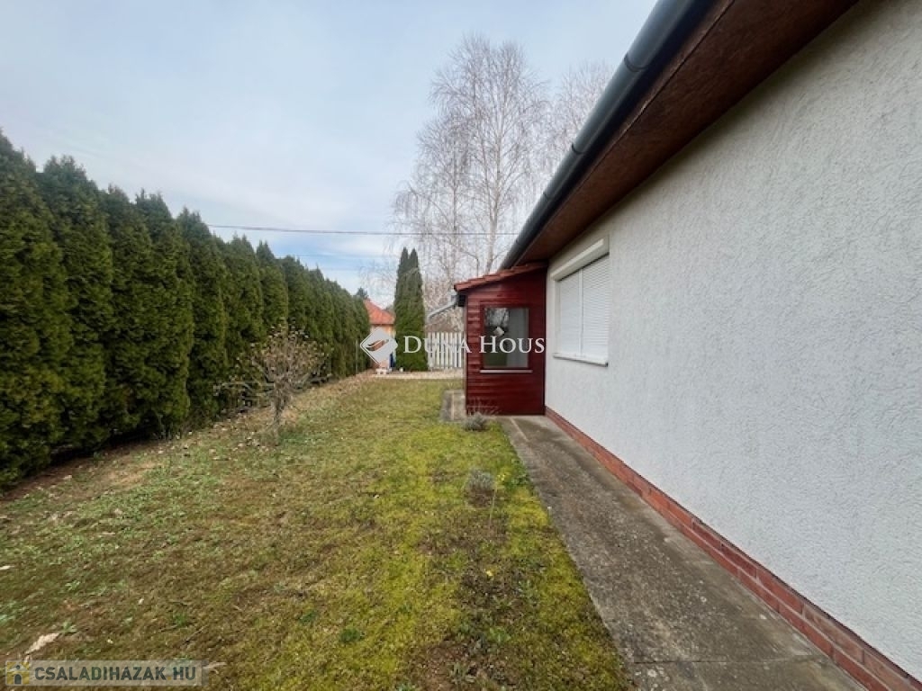 A kanadai acélvázas könnyűszerkezetes ( Horizont) ház nappali+ 3 szobás, gáz cirkó fűtéses, 22 m2-es fedett teraszos, 1008 m2-es kerítéssel körbekerített, gondozott, rendezett telken található. Házhoz egy állásos 16 m2-es garázs tartozik.