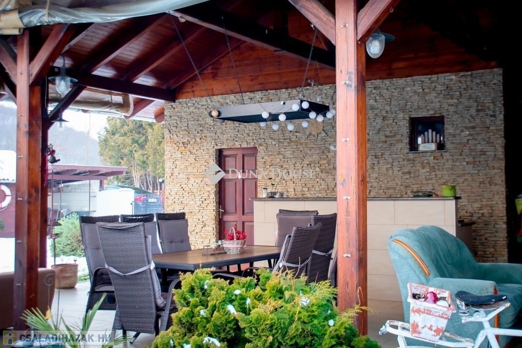 A terasz mérete ideális nagyobb családi vagy baráti társaságok fogadására is, melyet akár hűvösebb időben is használni lehet, mivel oldalai lezárhatók fóliával.