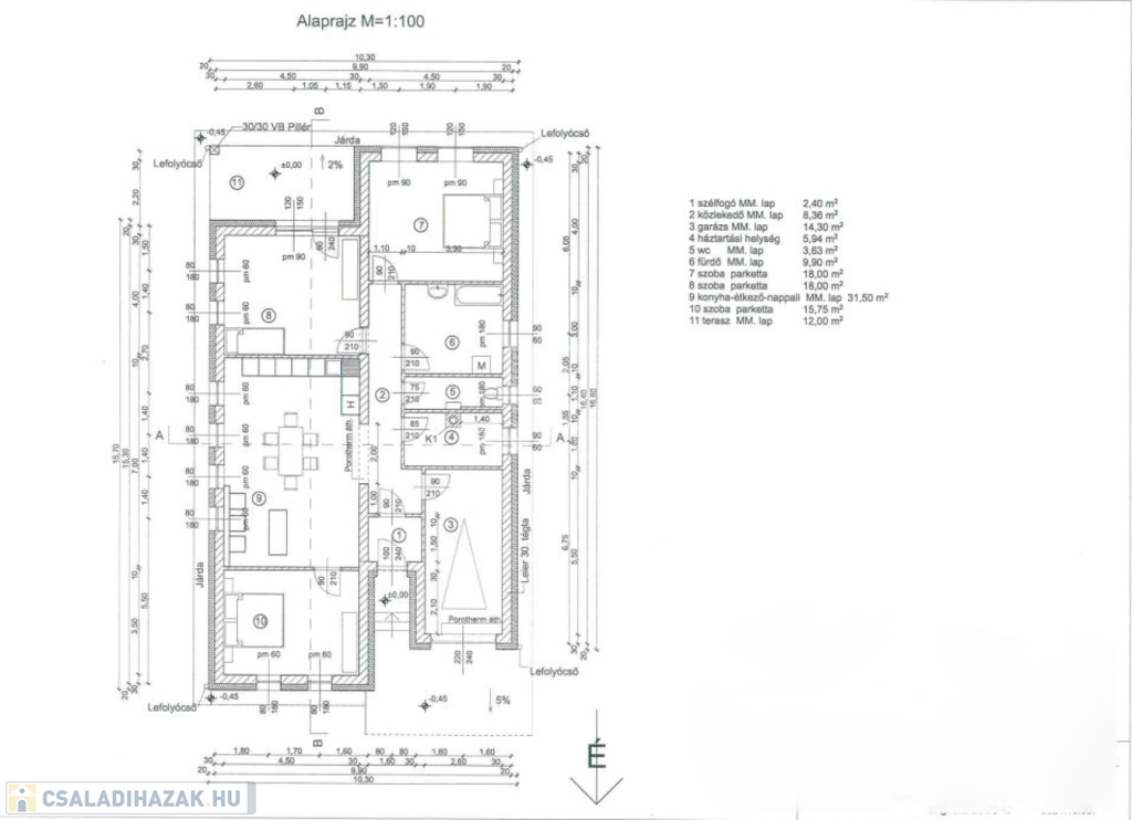 Az ingatlan belső elrendezése a modern életvitelt szem előtt tartva készült. Az AMERIKAI KONYHÁS nappali tökéletesen egyesíti a közösségi és privát terek előnyeit, míg a három tágas hálószoba garantálja a család minden tagjának kényelmét. A szélfogó, a közlekedő, a háztartási helyiség, a különálló toalett és fürdő mind a mindennapi funkcionalitást szolgálják.