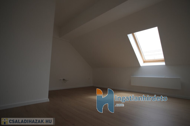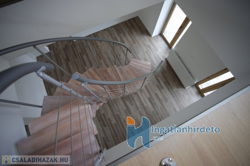 Az emeleten/tetőtérben szintén egy tágas előtér fogad minket elsőre,továbbá találunk még egy fürdőszobát és 2 szobát. Valamint egy keleti fekvésű,fából készült,fedett 4 négyzetméteres teraszt.