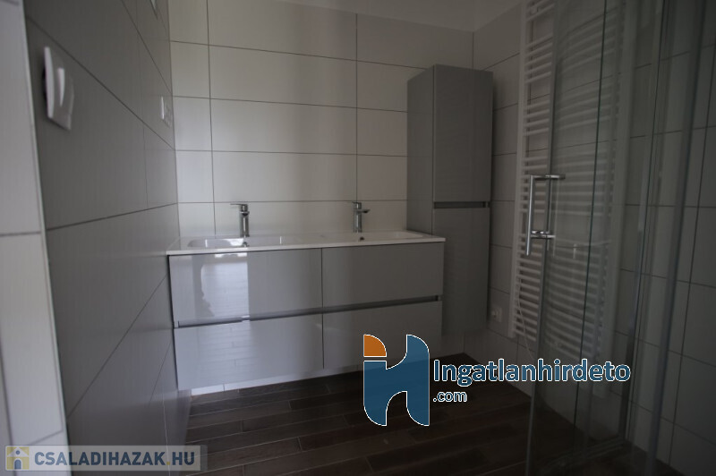 Az ikerház másik fele 142 négyzetméter nagyságú,melyhez szintén 1000 négyzetméter nagyságú udvar rész tartozik.