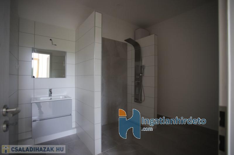A földszinten található az előtér,mellékhelyiség,külön nyíló fürdőszoba, 2 szoba,valamint a nappali+konyha.