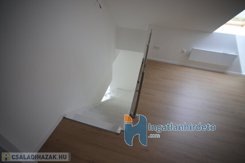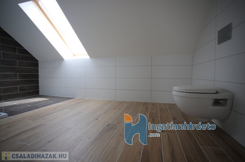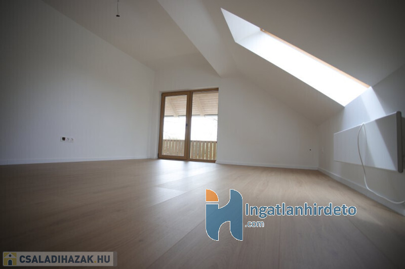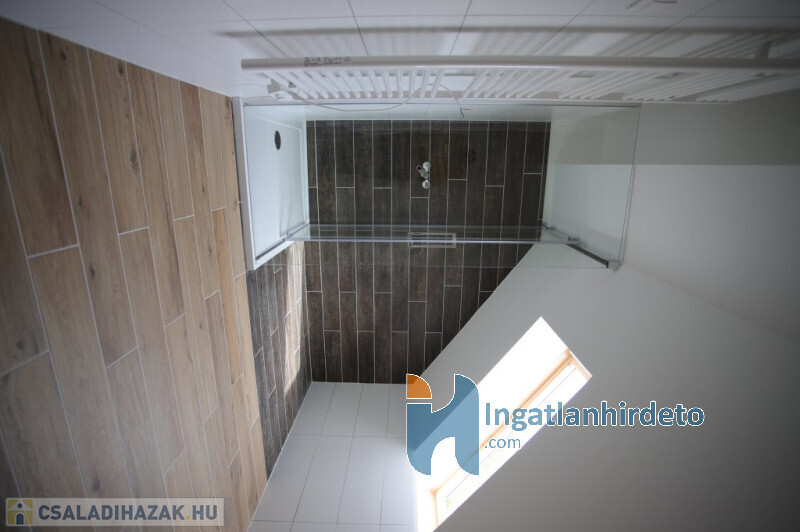 Az emeleten/tetőtérben szintén egy tágas előtér fogad minket elsőre,továbbá találunk még egy fürdőszobát,2 szobát. Valamint egy nyugati fekvésű,fából készült,fedett 3 négyzetméteres teraszt.