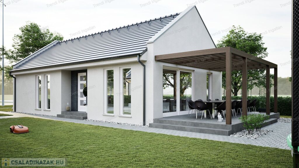 Nagyszentjánoson, az Erdőszél Lakóparkban 813 nm-es telken 84,01 nm-es, nappali + 3 szobás könnyűszerkezetes ház 25,94 nm-es terasszal, hőszivattyús fűtéssel kulcsrakészen eladó.