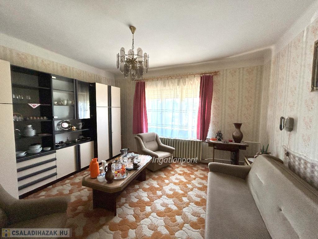 Nagyszokolyon, Siófoktól mindössze 30 km-re, csendes falusi környezetben eladó egy tehermentes, azonnal beköltözhető, kiváló állapotú, hőszigetelt, 127 m2-es, kádár kocka jellegű téglaház.