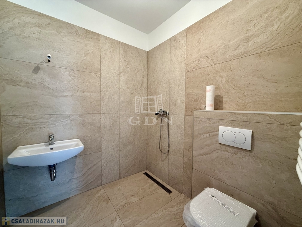 Az ingatlan elkészült, igényes burkolatokkal, beltéri ajtókkal, szaniterekkel látták el.