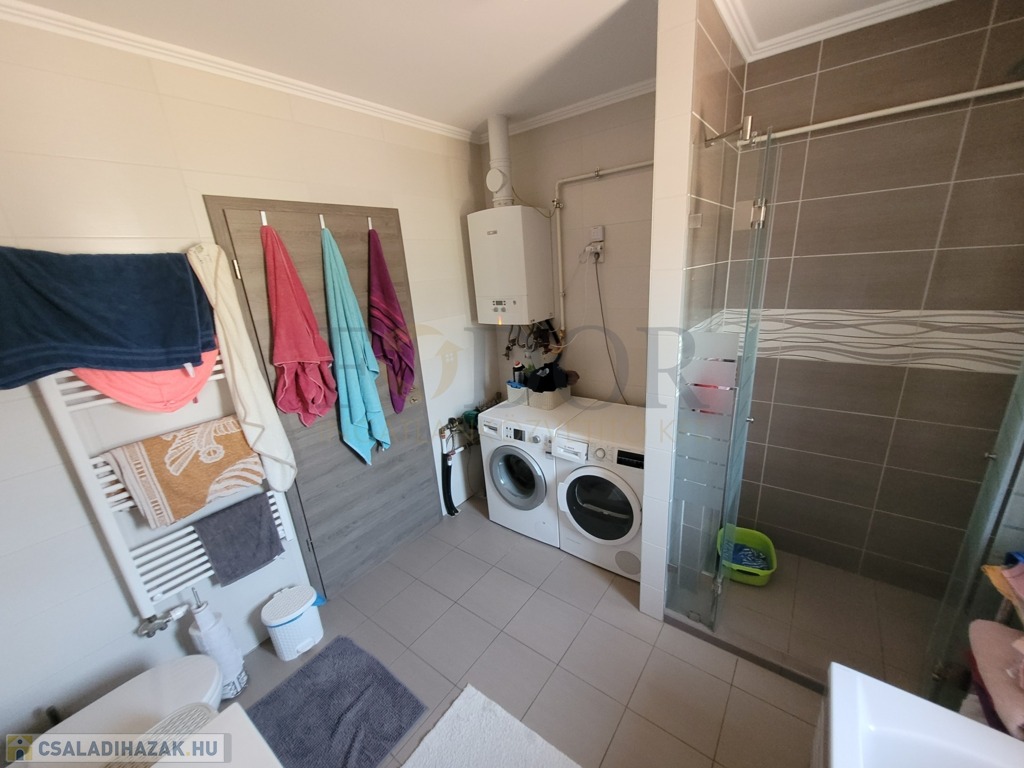 A fűtésről és meleg vízről egy megbízható 24 Kw-os (Bosch) kondenzációs gázkazán gondoskodik, a hidegburkolatos helyiségekben padlófűtéssel, a szobákban radiátoros megoldással. A nappali egy modern 5 Kw-os (Panasonic), a 2 db hálószobában 2 kw-os inverteres hűtő-fűtő klímát kapott, amely garantálja a kellemes klímát az év minden szakában.. Az épület modern riasztórendszerrel van ellátva, hogy mindig biztonságban érezze magát.
