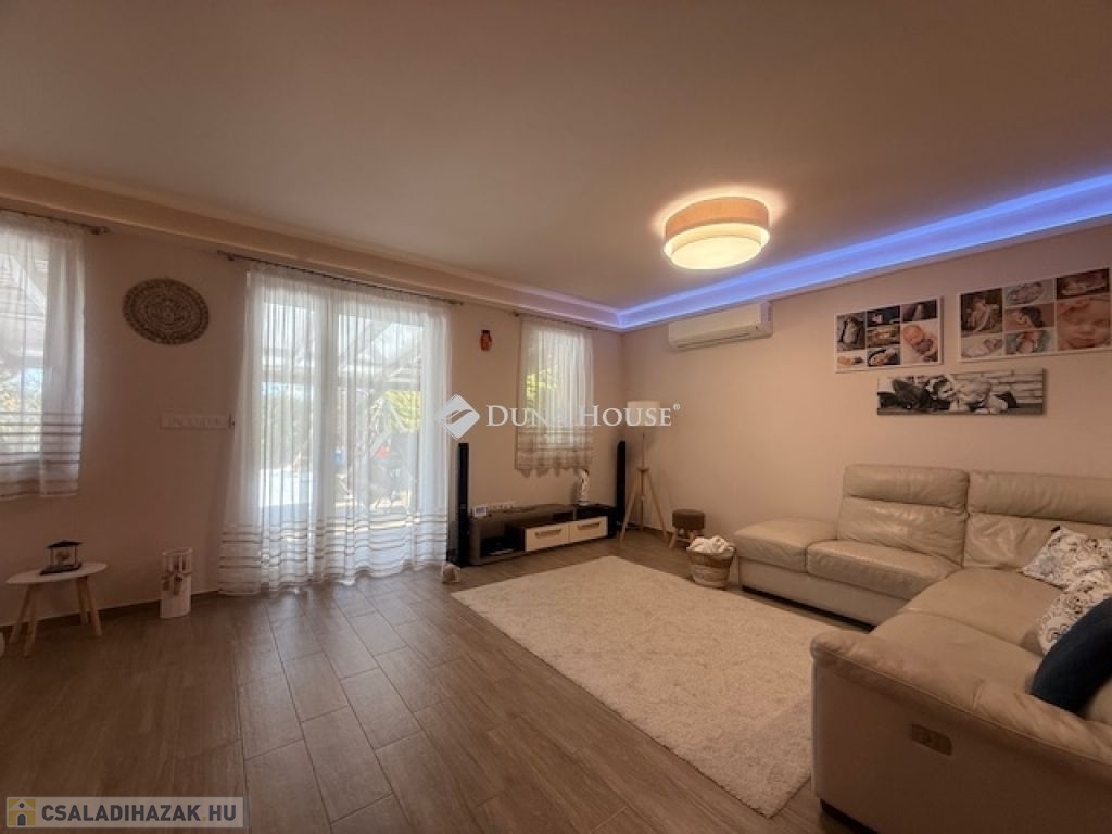 Budapesttől mindössze 25 percre !!Prémium családi ház Nagytarcsán mediterrán hangulat, modern kényelem családias szép környezetben .Nagytarcsa kedvelt , új építésű házakkal körül ölelt részén kínáljuk megvételre ezt a 2018-ban épült, igényesen kialakított családi házat, amely 893 m²-es, gondozott telken helyezkedik el.Az ingatlan tágas, világos terekkel rendelkezik:Kialakítása : amerikai konyhás nappali, 3 kényelmes hálószoba, 2 fürdőszoba, gardrób szoba kamra háztartási helység Ideális választás nagyobb családok számára is.A ház belső kialakítását ízléses színek, prémium burkolatok és mediterrán hangulat jellemzi. A hálószobákban laminált parketta, a többi helyiségben magas minőségű kő- és burkolatok kerültek beépítésre.Extrák, amelyek valódi értéket képviselnek: elektromos redőnyök kamerarendszer és riasztórendszer automata öntözőrendszer 5 kW-os napelem rendszer az alacsony rezsiért 2 db klímaberendezés beépített szekrények és gépesített konyha a vételár részét képezik 41 m²-es, elektromos kapunyitós garázsEz az ingatlan tökéletes választás azoknak, akik modern, energiatakarékos, azonnal költözhető otthont keresnek nyugodt, mégis jól megközelíthető környezetben. Ne hagyja ki ezt a kivételes lehetőséget tekintse meg személyesen is!