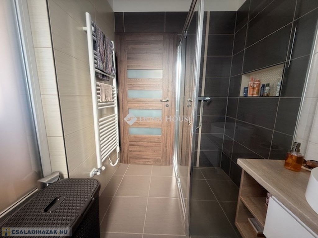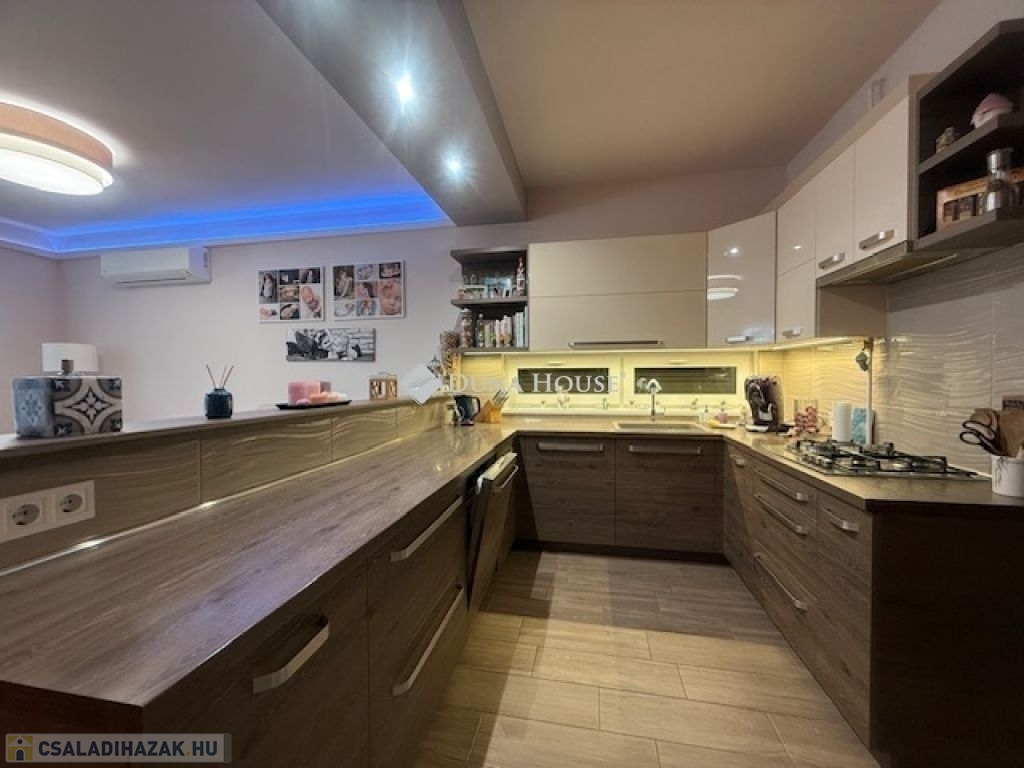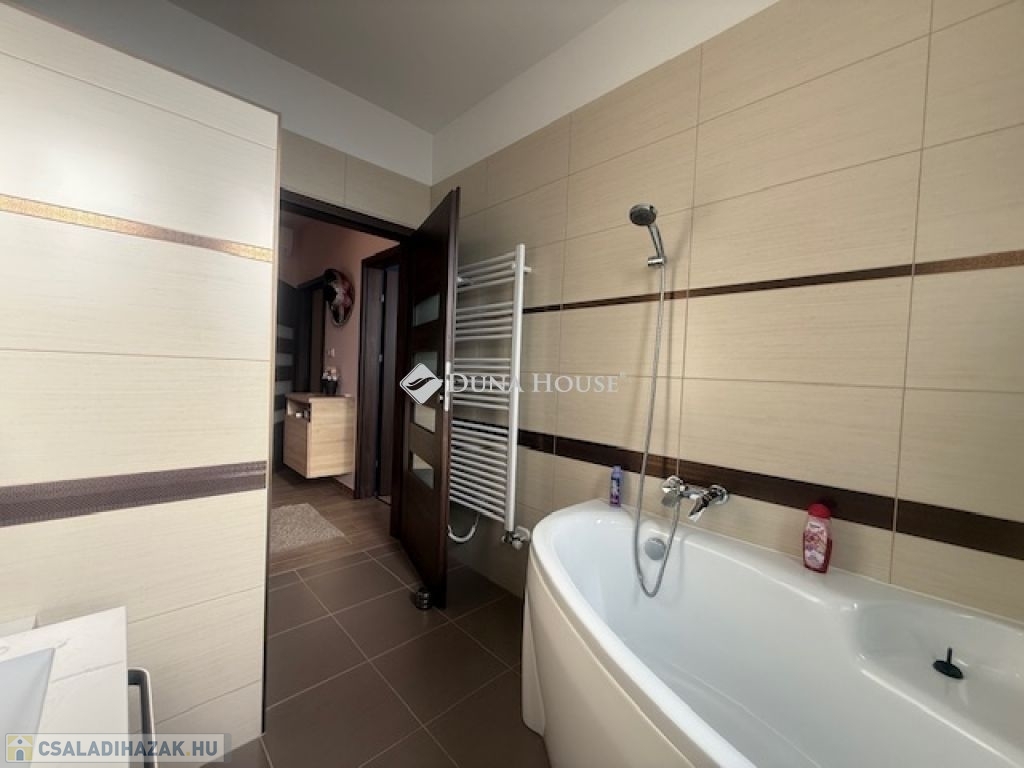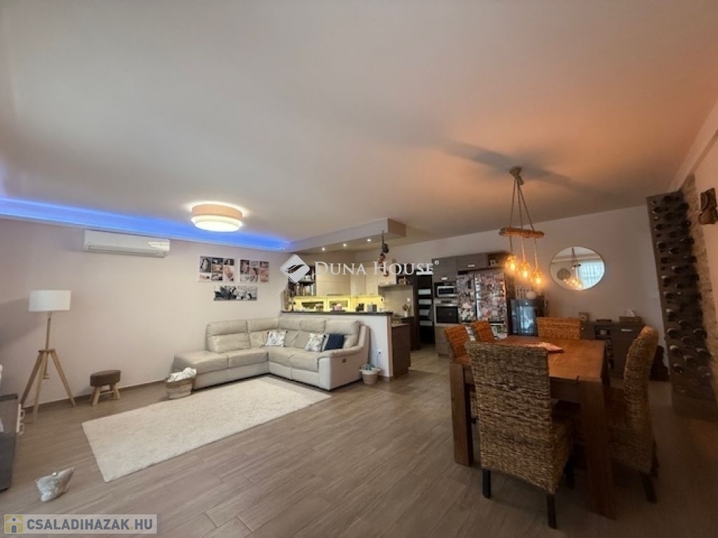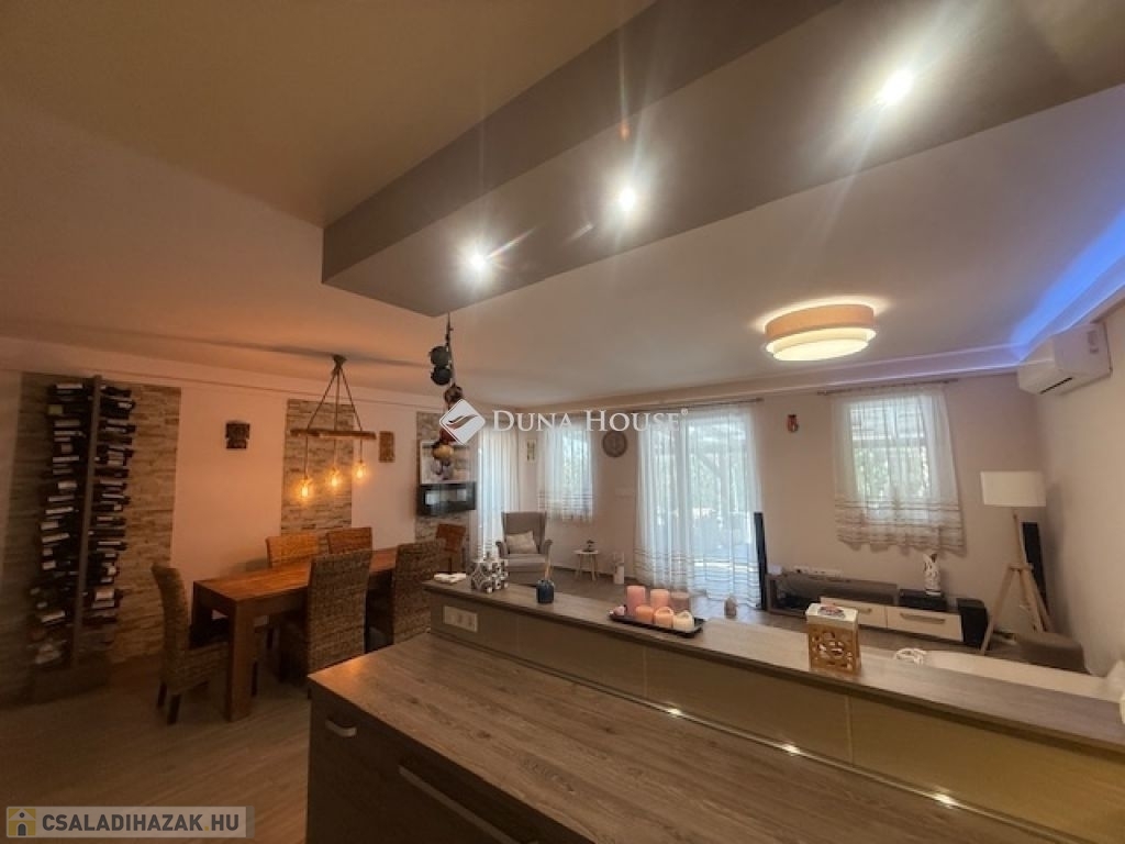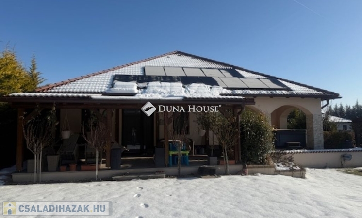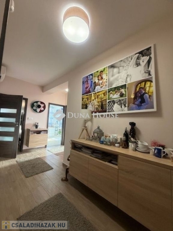 Budapesttől mindössze 25 percre !!Prémium családi ház Nagytarcsán mediterrán hangulat, modern kényelem családias szép környezetben .Nagytarcsa kedvelt , új építésű házakkal körül ölelt részén kínáljuk megvételre ezt a 2018-ban épült, igényesen kialakított családi házat, amely 893 m²-es, gondozott telken helyezkedik el.Az ingatlan tágas, világos terekkel rendelkezik:Kialakítása : amerikai konyhás nappali, 3 kényelmes hálószoba, 2 fürdőszoba, gardrób szoba kamra háztartási helység Ideális választás nagyobb családok számára is.A ház belső kialakítását ízléses színek, prémium burkolatok és mediterrán hangulat jellemzi. A hálószobákban laminált parketta, a többi helyiségben magas minőségű kő- és burkolatok kerültek beépítésre.Extrák, amelyek valódi értéket képviselnek: elektromos redőnyök kamerarendszer és riasztórendszer automata öntözőrendszer 5 kW-os napelem rendszer az alacsony rezsiért 2 db klímaberendezés beépített szekrények és gépesített konyha a vételár részét képezik 41 m²-es, elektromos kapunyitós garázsEz az ingatlan tökéletes választás azoknak, akik modern, energiatakarékos, azonnal költözhető otthont keresnek nyugodt, mégis jól megközelíthető környezetben. Ne hagyja ki ezt a kivételes lehetőséget tekintse meg személyesen is!