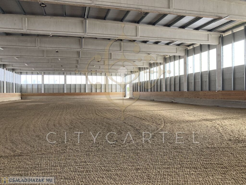 Eladó 80.221 négyzetméteren található 2018-ban épített 2091 négyzetméteres modern lovarda, Budapesttől 15 perc kocsiútra.