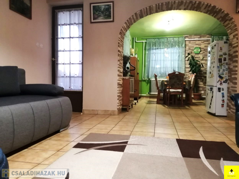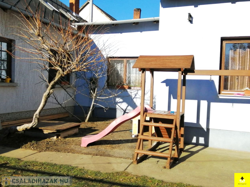 Az utcafronti házhoz kapcsolódik a másik 60 m2-es épület. A házban egy 28 m2-es szoba, egy konyha, egy étkező, egy fürdőszoba, egy wc található. Ez a ház tovább bővíthető a tetőtér beépítésével.