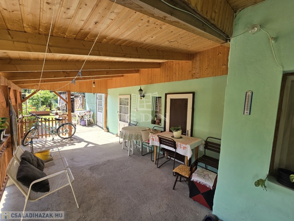 A telek rendezett, gondozott, a házhoz tartozik továbbá egy nyitott, fedett garázs. A hátsó udvarrészen további zöld terület található, valamint a telek végében egy saját, erdősávval határos rész is rendelkezésre áll, amely természetes elkülönülést biztosít a pihenéshez.